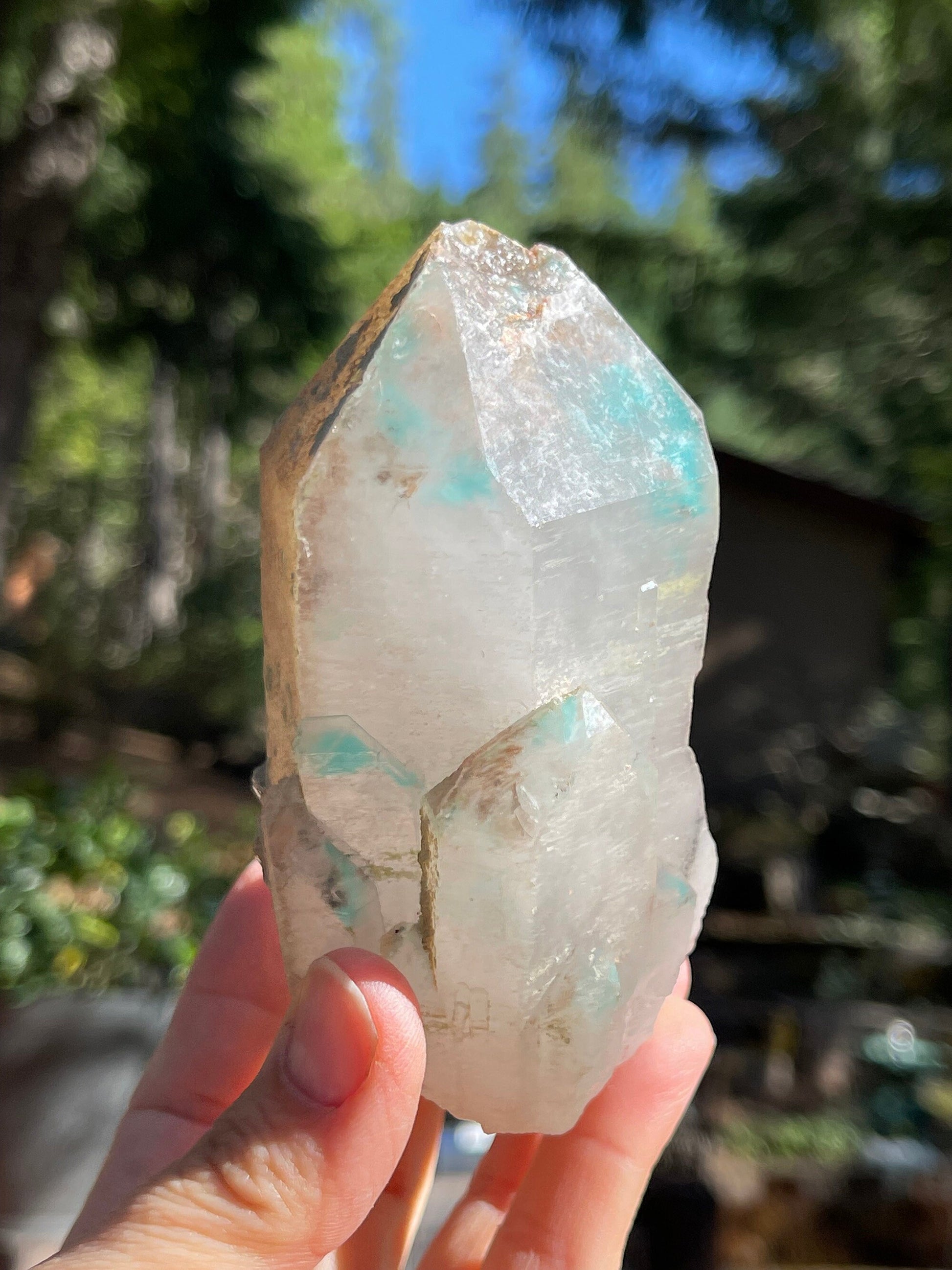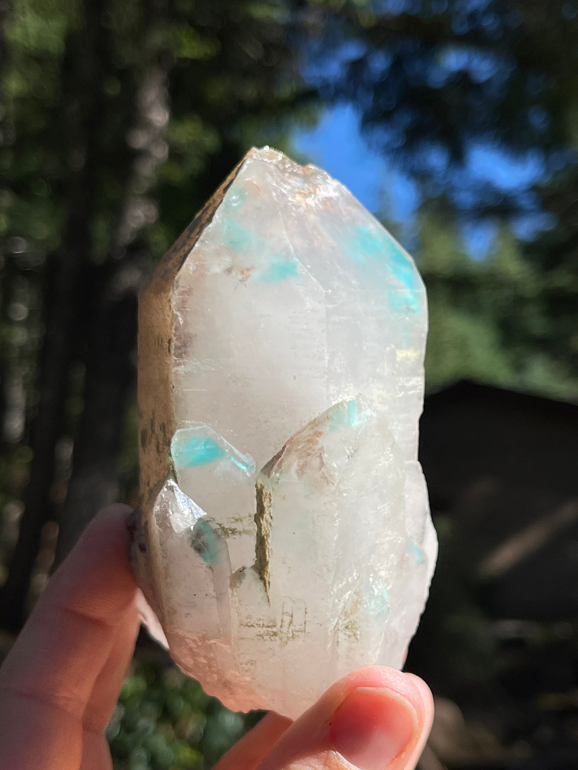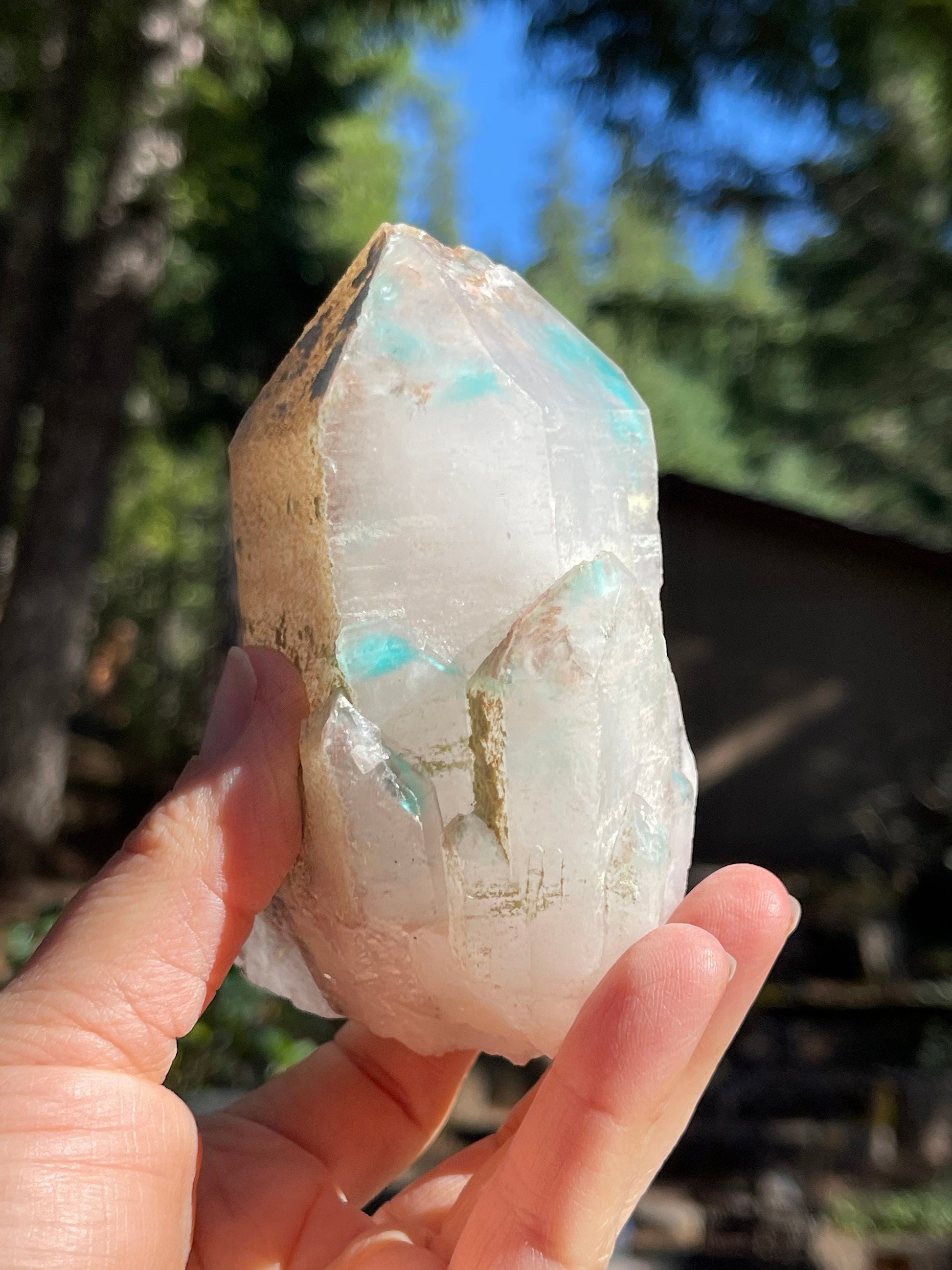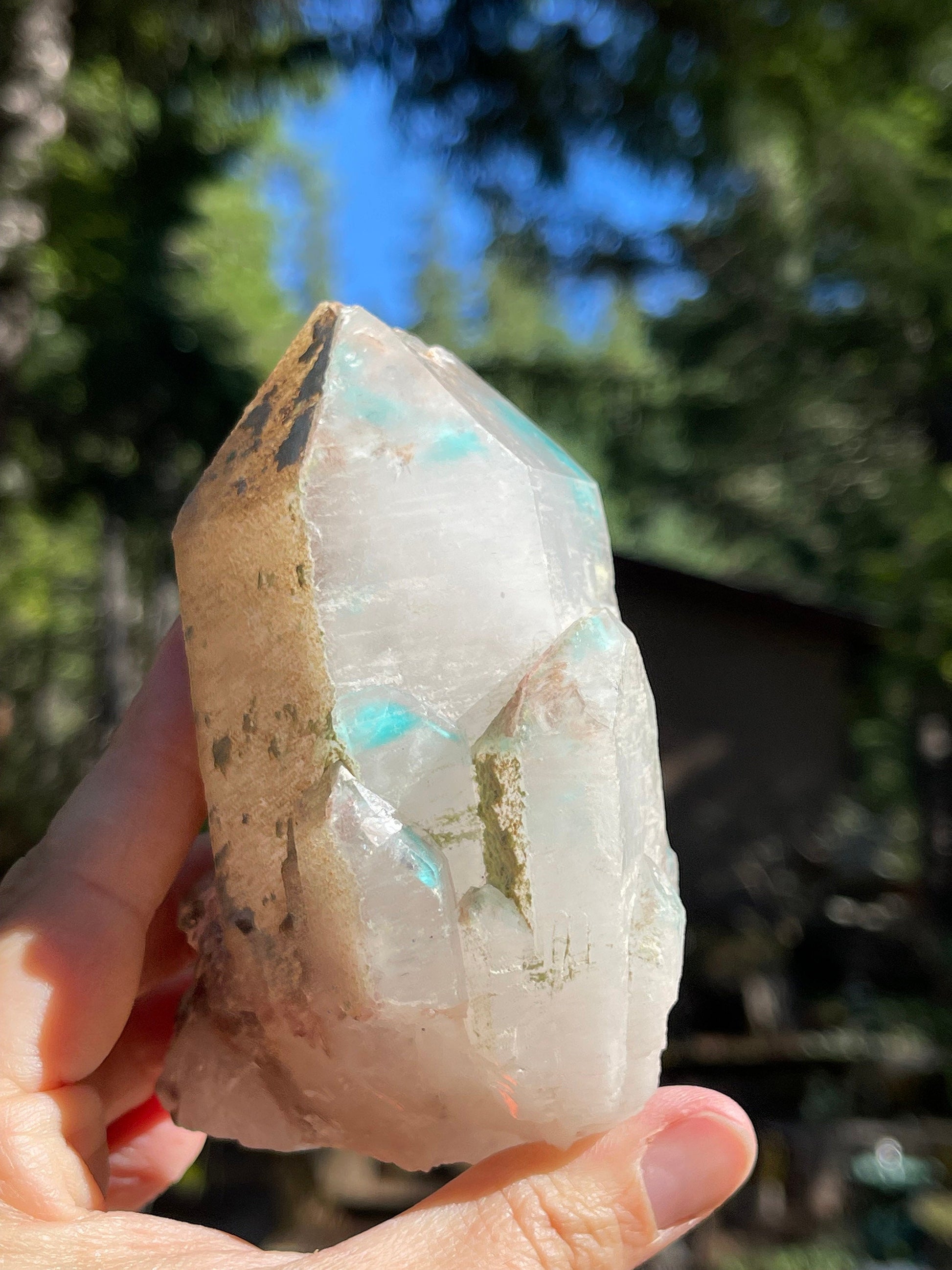 This listing is for the Ajoite in Quartz shown. Featuring a deep blue saturated Ajoite included Quartz crystal in natural, unpolished form.