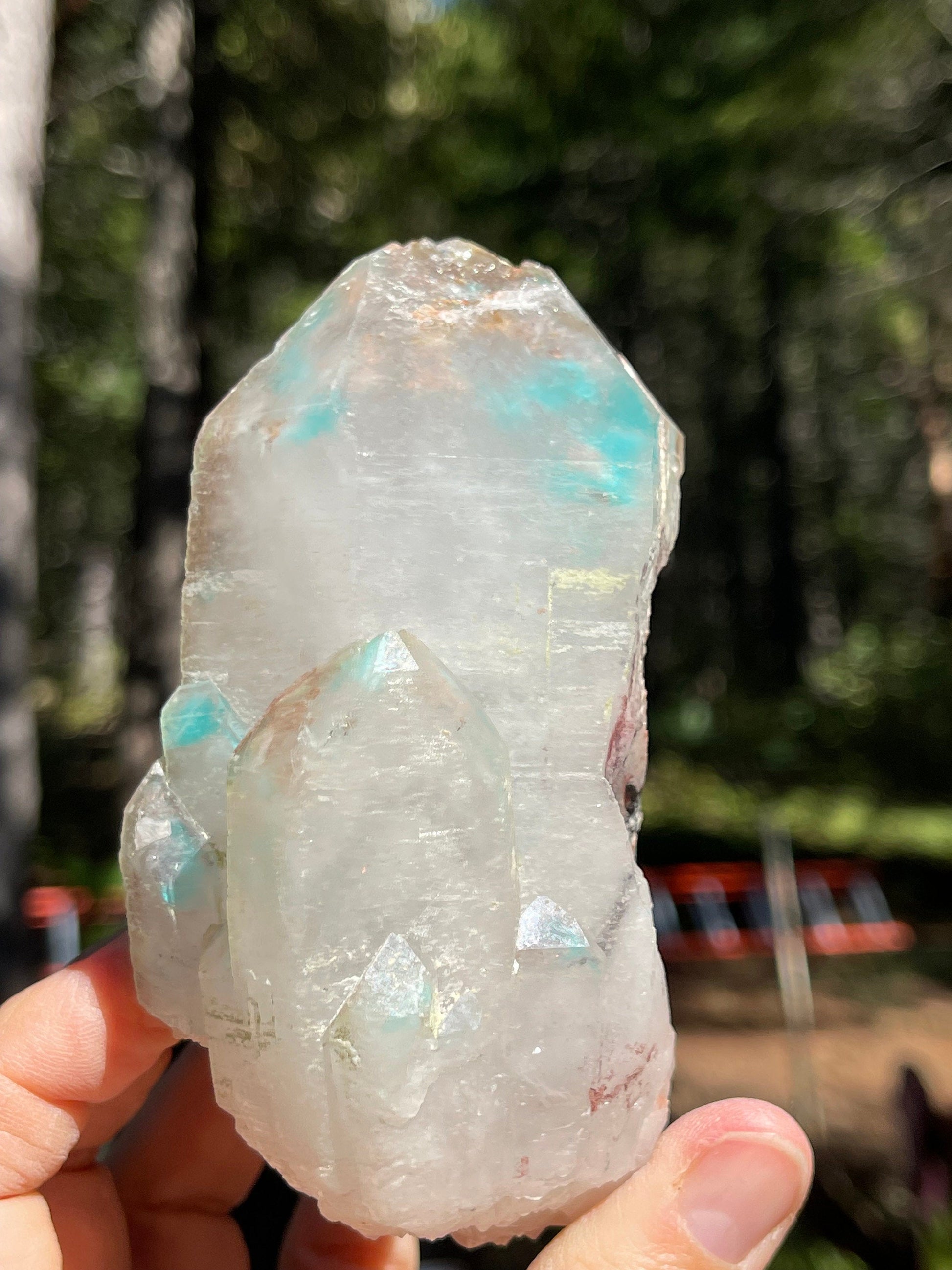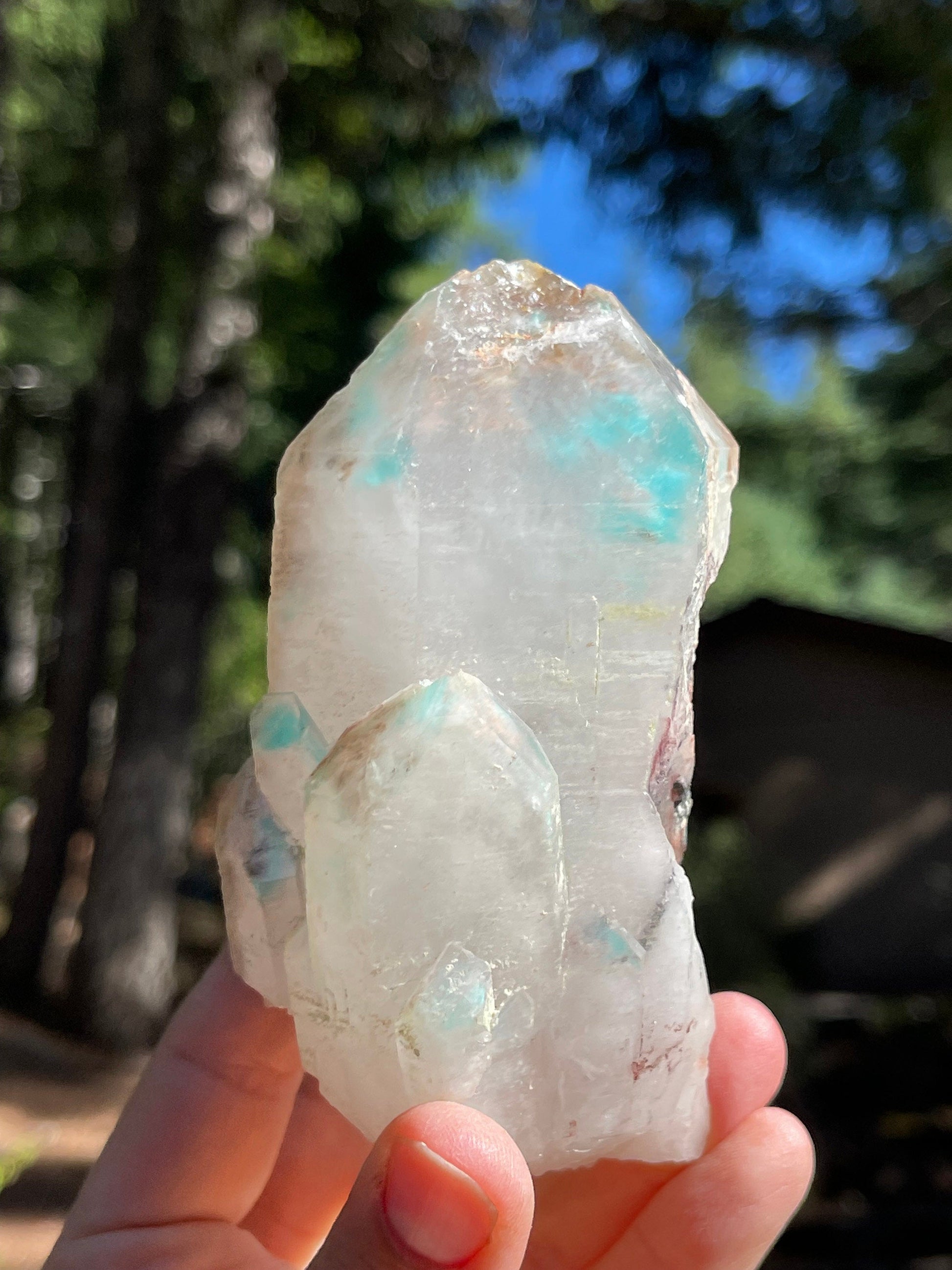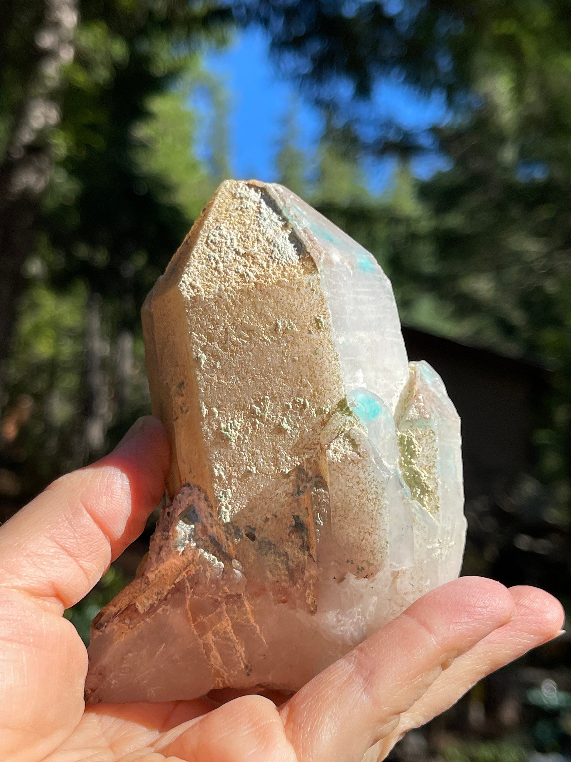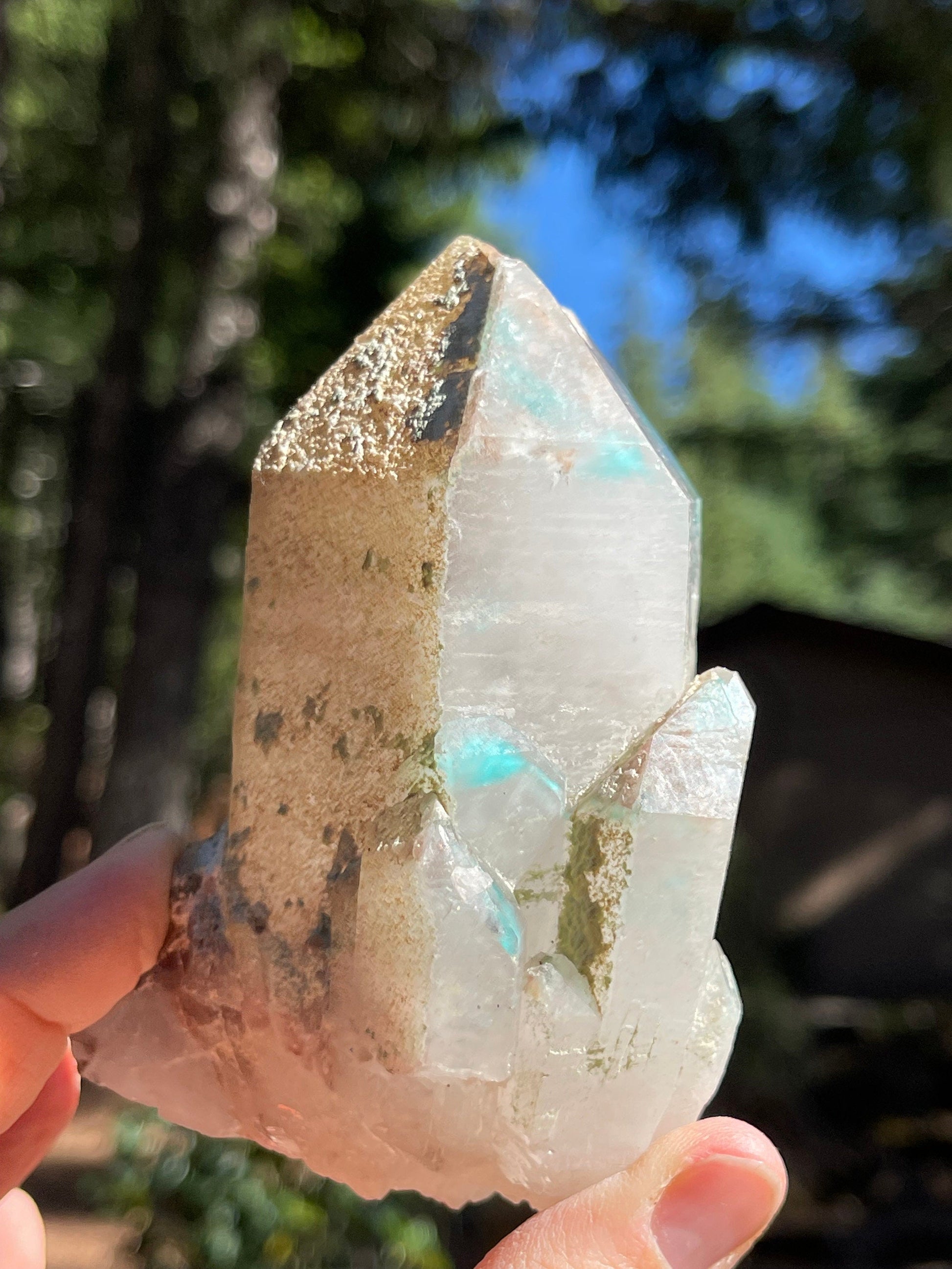 This listing is for the Ajoite in Quartz shown. Featuring a deep blue saturated Ajoite included Quartz crystal in natural, unpolished form.