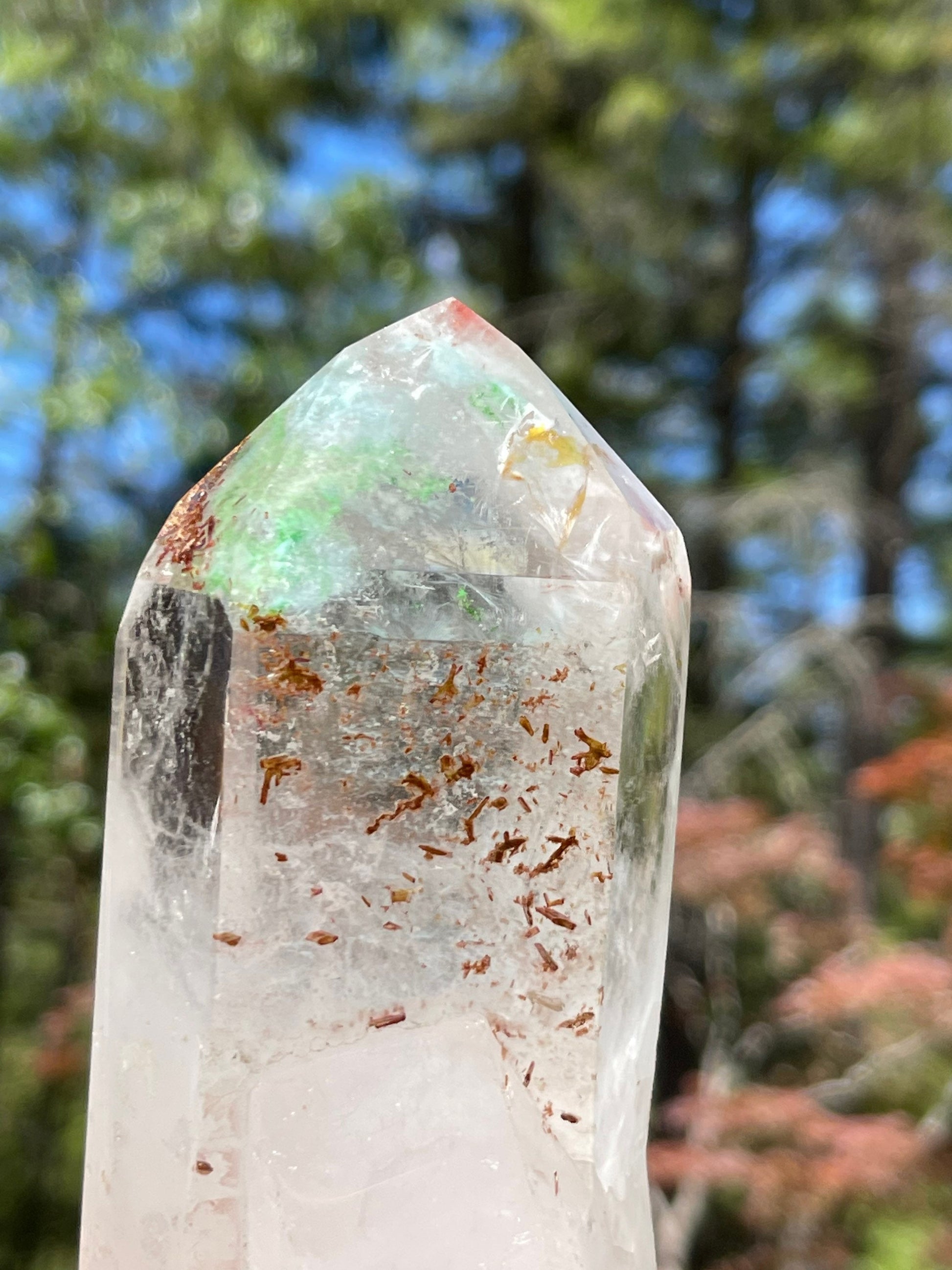 This listing is for the Ajoite in Quartz shown. Featuring a lustrous quartz with Ajoite, Tangeite and Copper. Multi-layered phantoms are formed at the tip of the quartz. Overall an eye catching crystal that would make an amazing collectors piece! This quartz is polished and self standing. A magical addition to any collection. A private collection release!