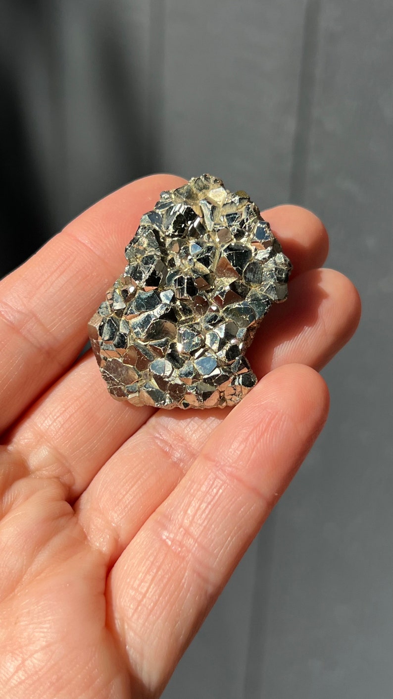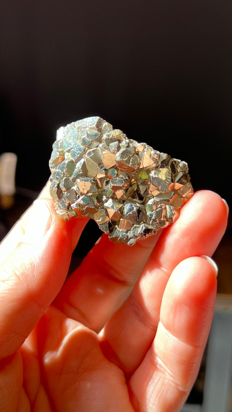 This listing is for the Pyrite crystal shown. Featuring a beautiful display of lustrous pyrite crystals. This is one of the best pyrites! Does not get much better in terms of quality, brilliance and luster. The faces have a mirror-like finish! Natural, unpolished from Peru.
