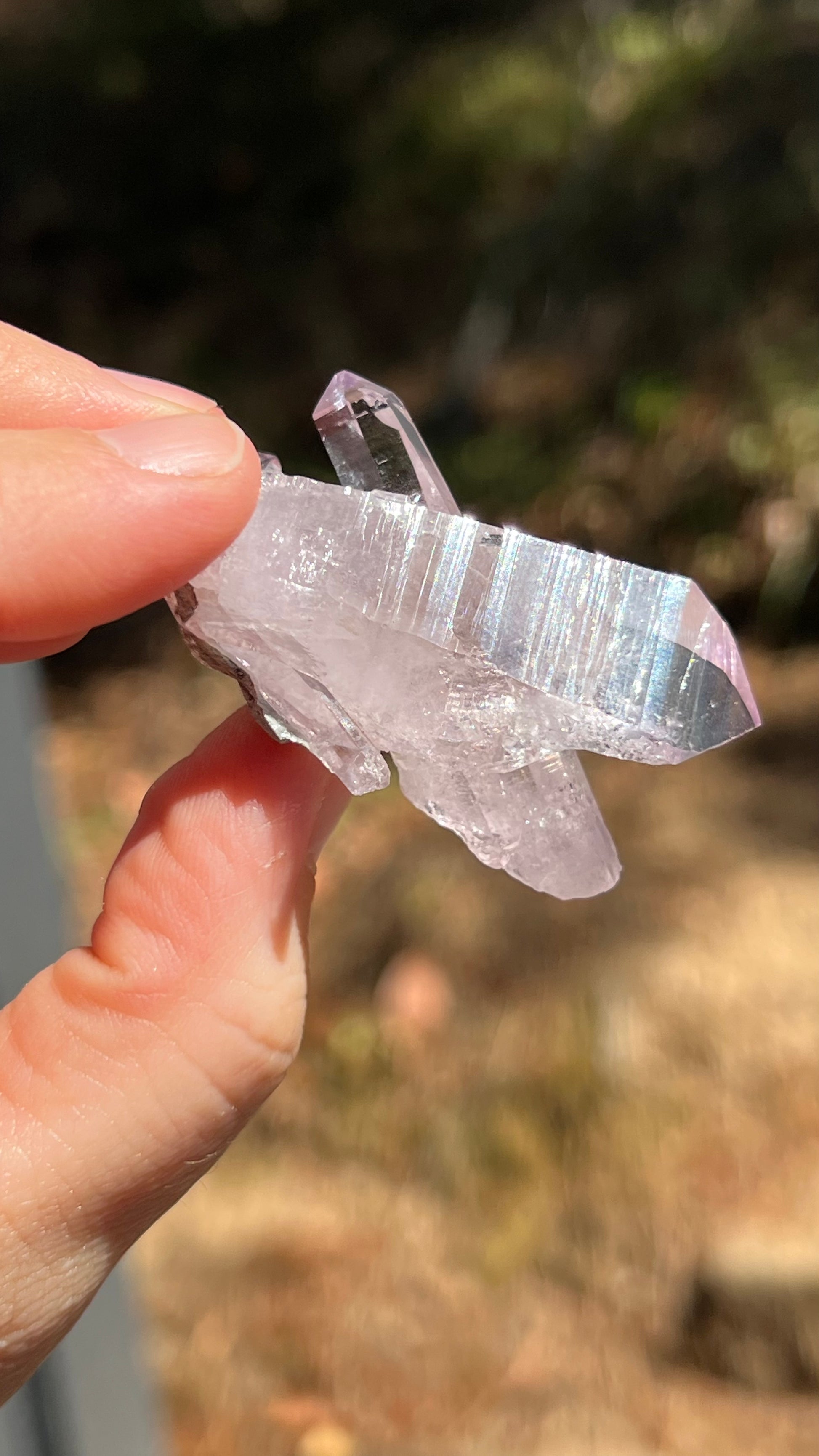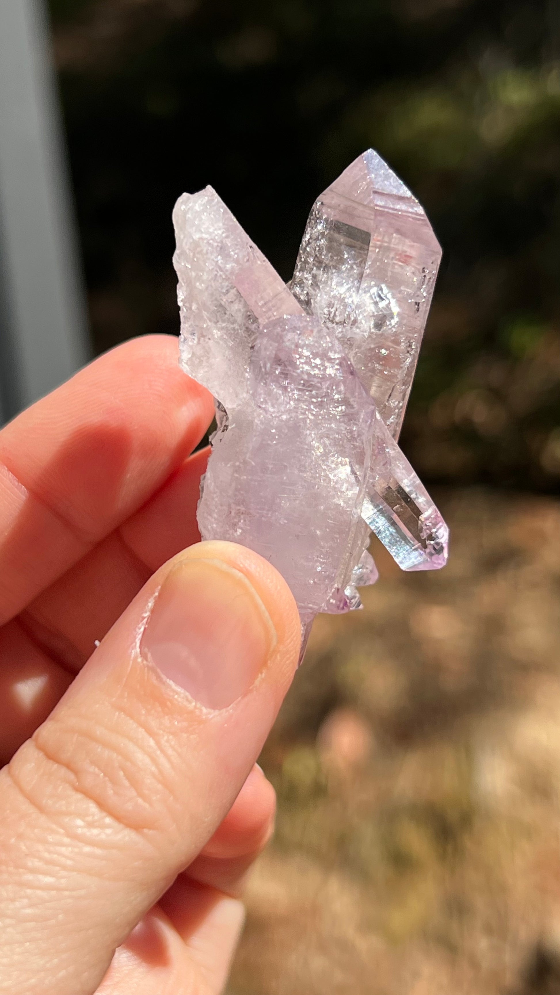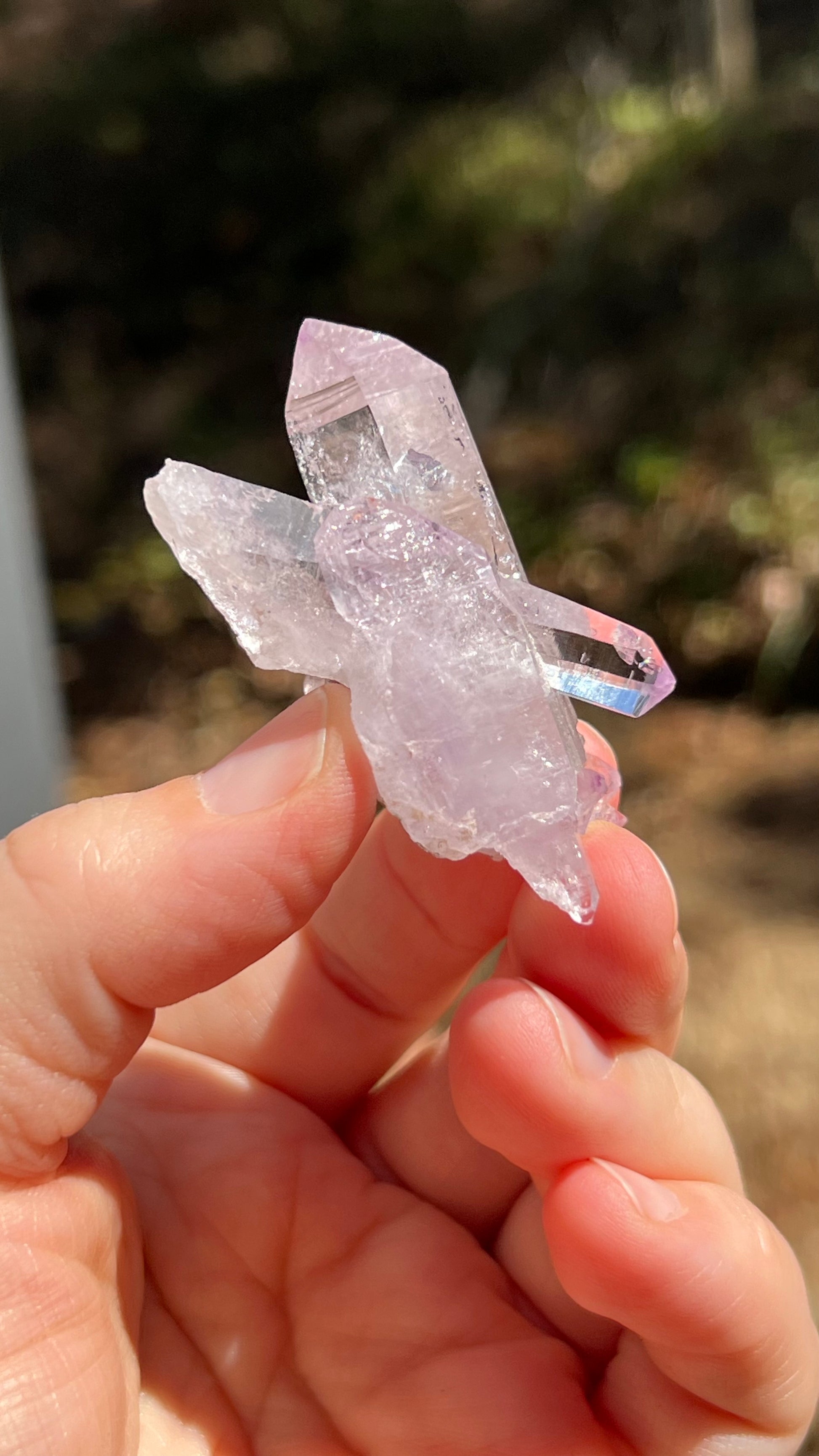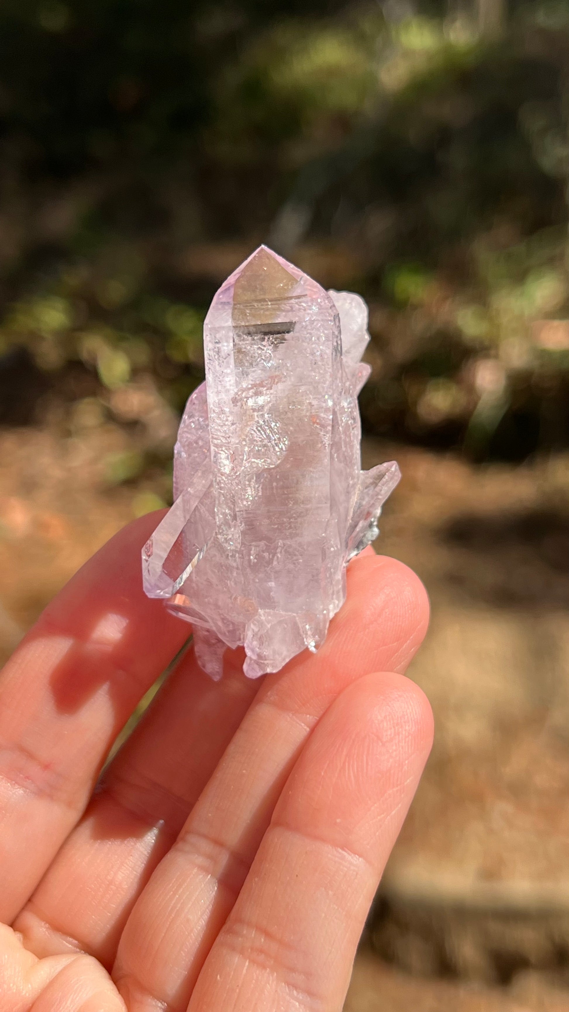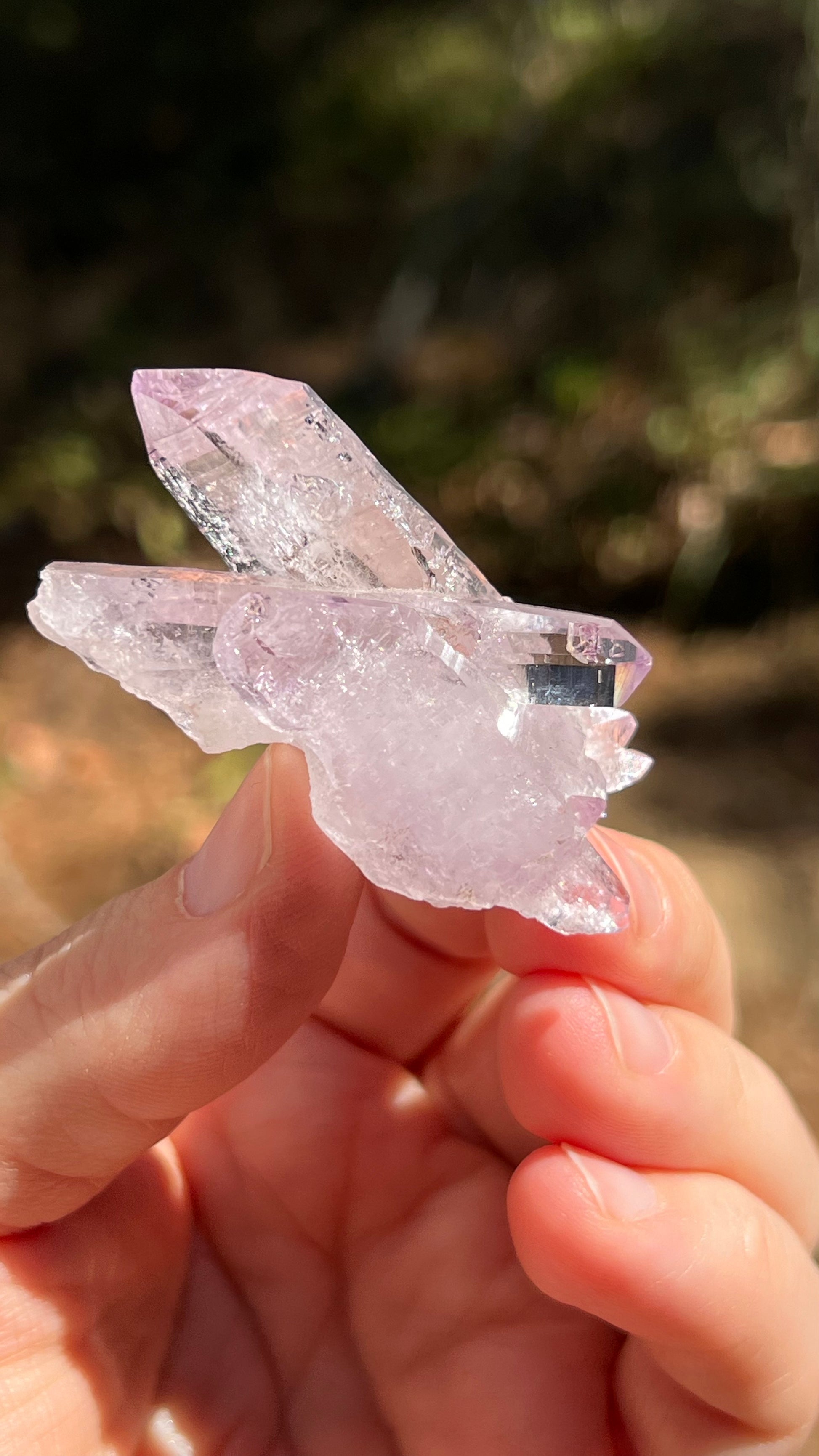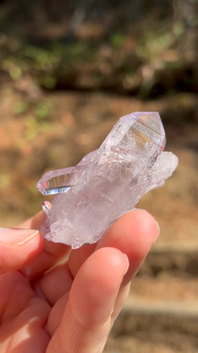 This listing is for the Amethyst crystal shown. Featuring two gemmy-lustrous, double-terminated Vera Cruz Amethyst with a third double terminated point in between them both. A beautiful light purple specimen. A beautiful crystal with great luster!
