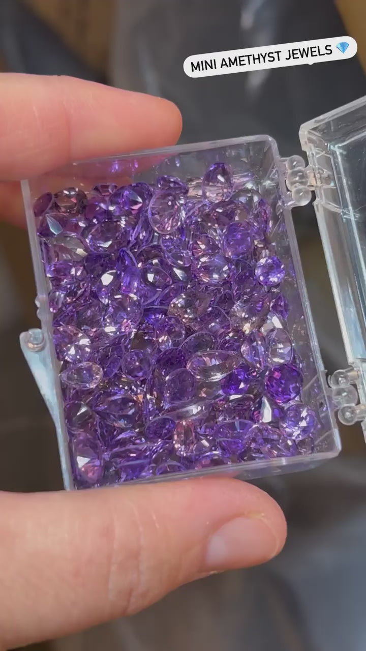 This listing is for the Amethyst faceted gemstones shown. Featuring gorgeous, quality Amethyst from Brazil. Sparkling and bright, these Amethyst have beautiful color, ranging from lavender to deep grape purple. Amazing clarity and overall quality. This is for a set of 7 gemstones, 6-7 carats total. The colors of mixed and the shapes are a mix of the following: round, oval, emerald and pear facet. These are old stock from a personal collection. Enjoy!