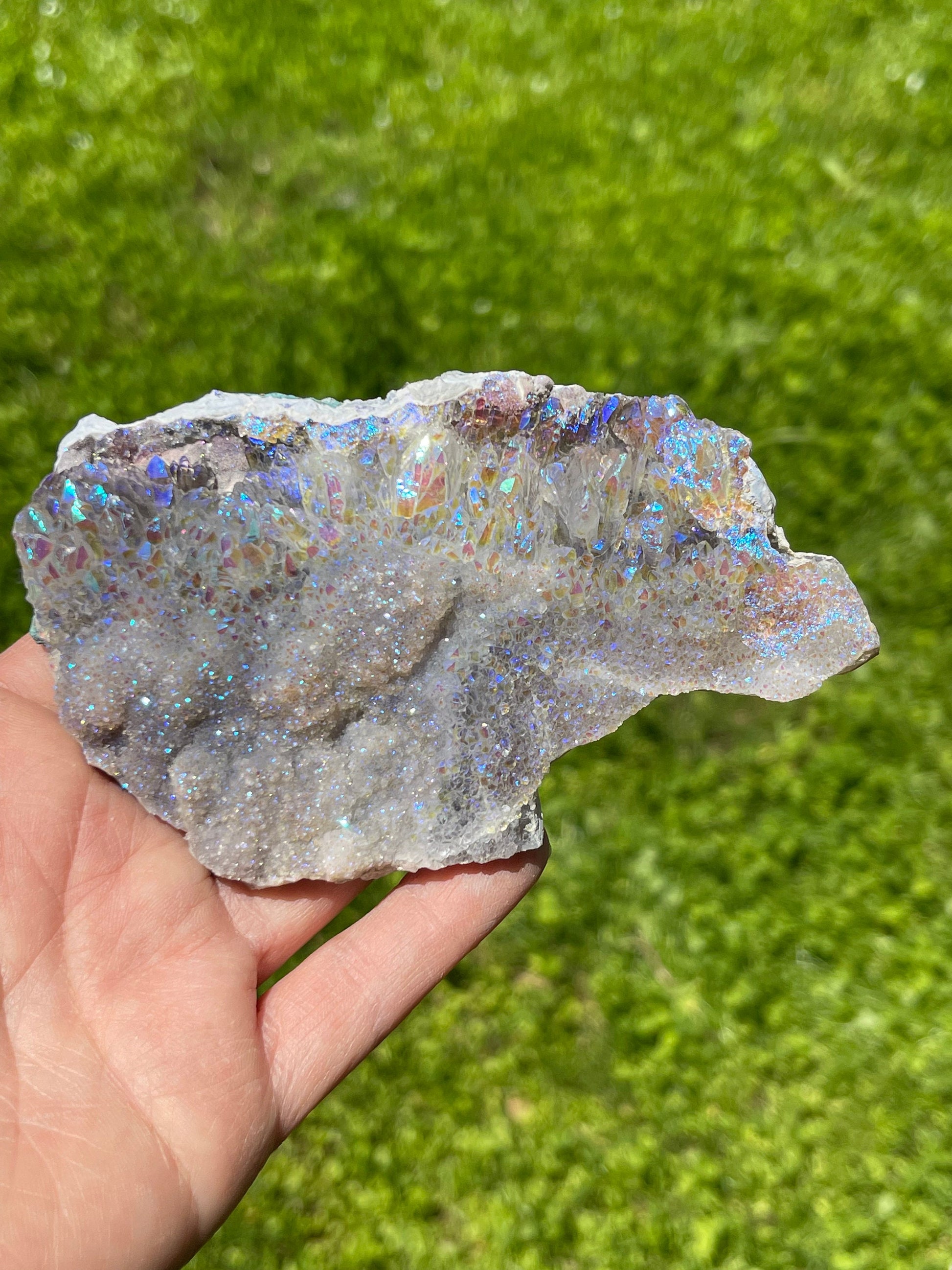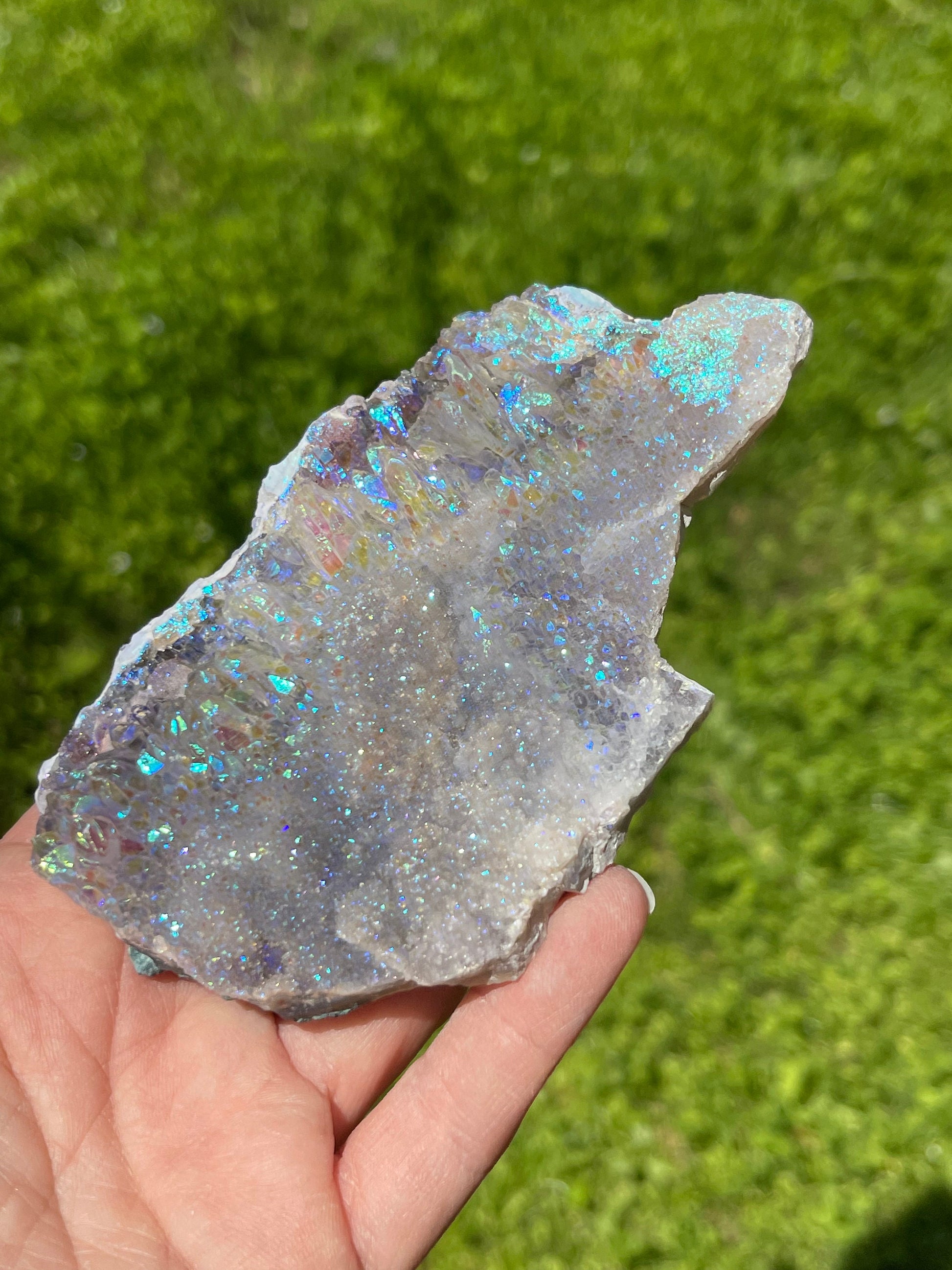 This listing is for this Angel Aura Amethyst Flower shown. Featuring sparkling amethyst crystals in micro druse, elestial and crystalline growth patterns! These are high quality flowers and it took us some time to curate this collection for release! We have not offered these for a few years. Each one is so unique - with magical form and high luster! They sparkle so nice. A magical addition to any collection!