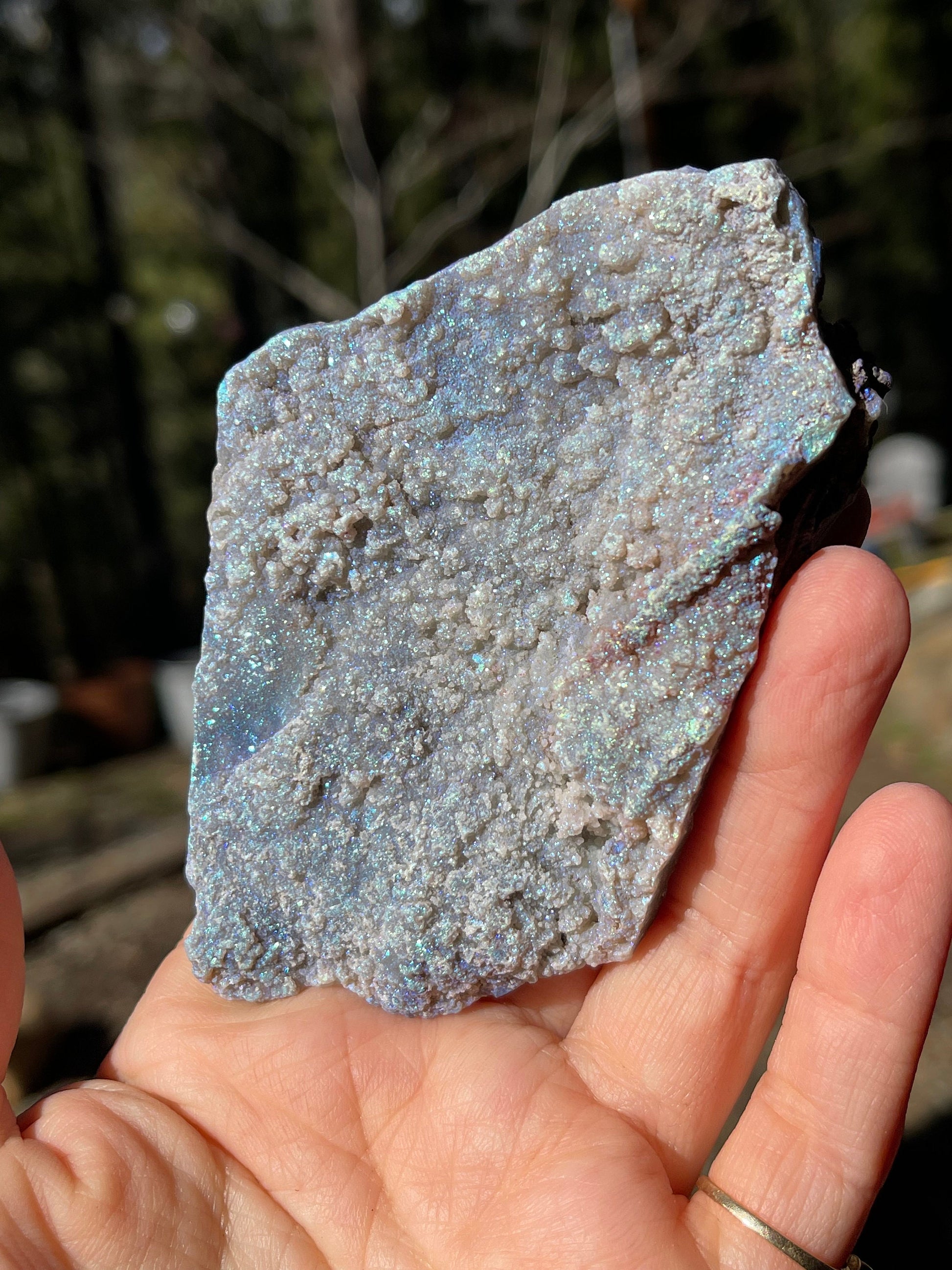 This listing is for the Angel Aura Chalcedony shown. Featuring an extra sparkly druse plate, crystal terminations and tiny druse stalactites! A magical addition to any collection.