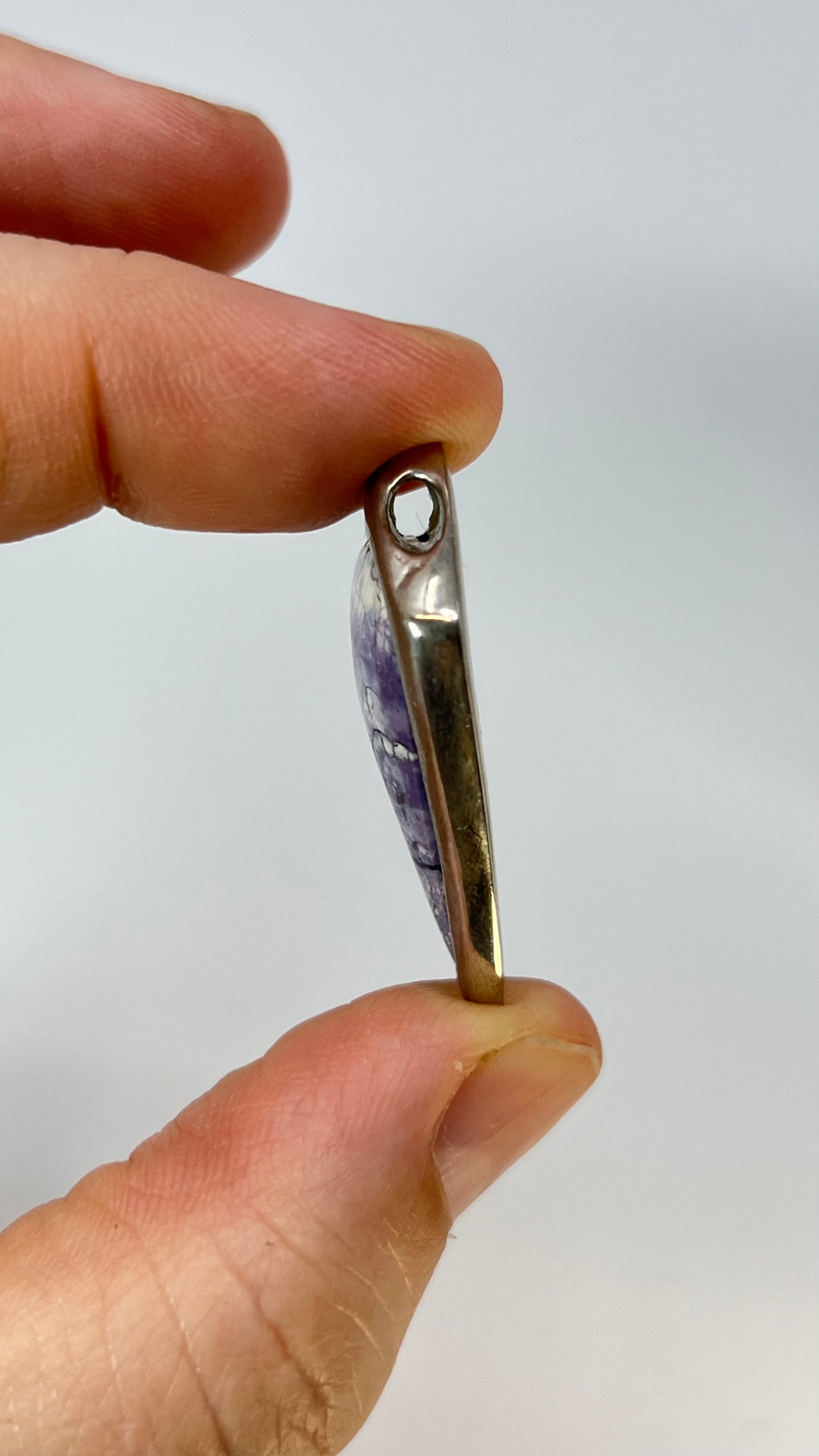 This listing is for the Bertrandite pendant shown. Bertrandite, also known as Tiffany Stone, is an opal fluorite and is found only at the Spor Mountain deposit in Utah. This mine is now closed indefinitely, and what's on the market is all that is available. The cabochon set in this pendant is the very best quality found of this material and is simply gorgeous! Featuring all the sought after color and patterns known for this material. This listing is for the sale of the pendant only. You will need to provide your own chain.