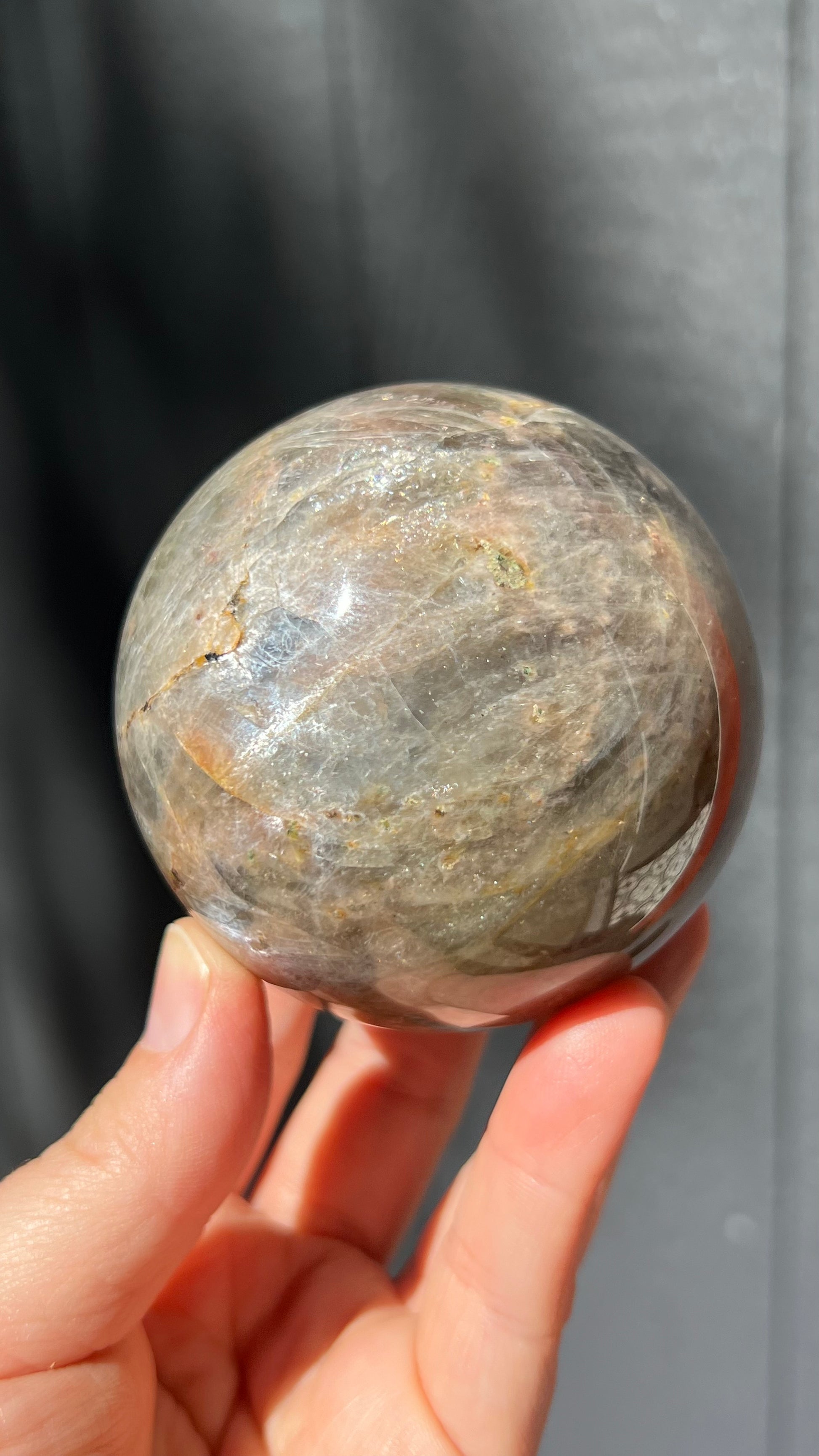 This listing is for the Black Moonstone sphere shown. Featuring a nice, polished moonstone sphere with great areas of silver sheen. Includes a sphere stand.