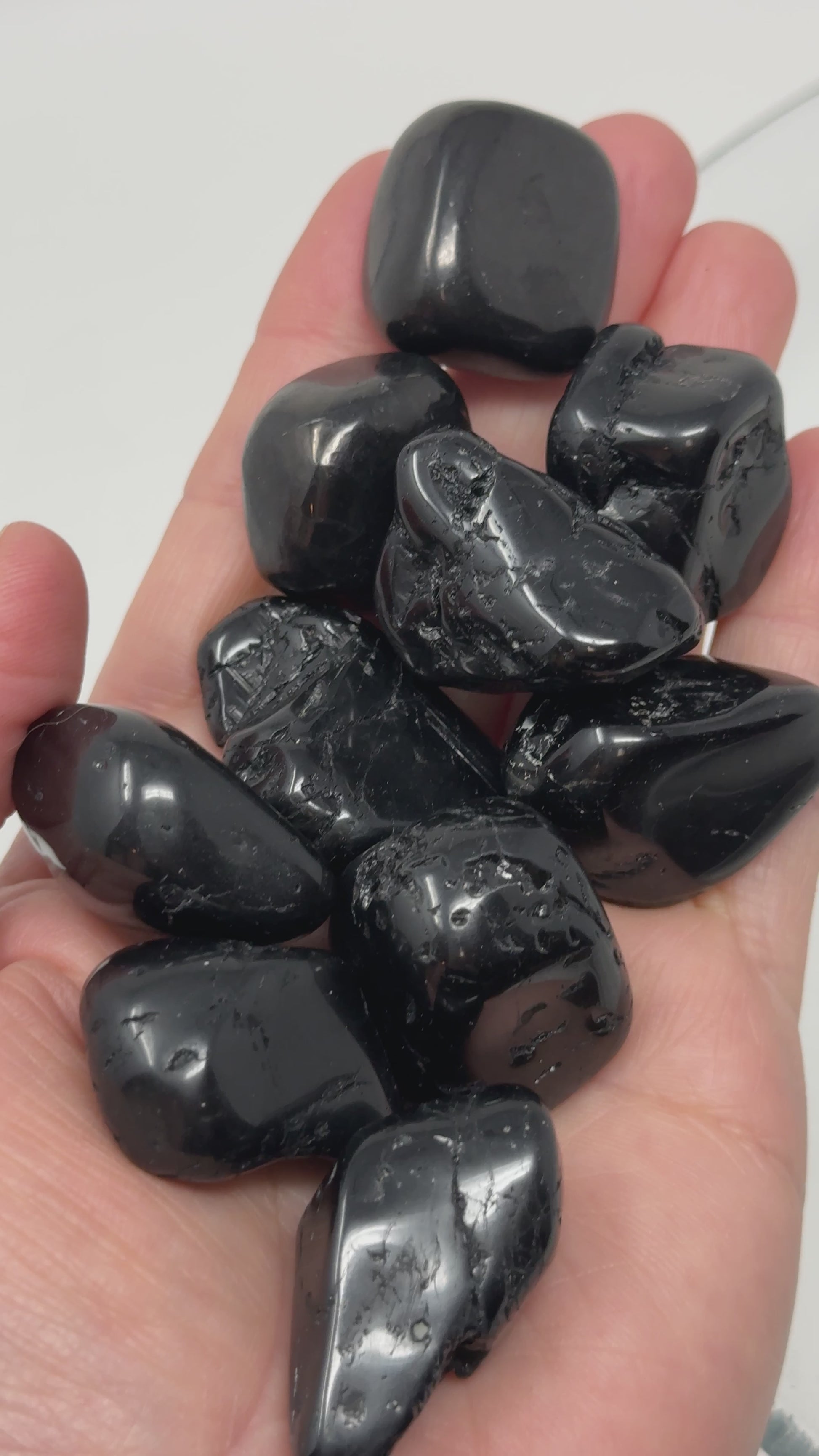 This listing is for one (1) Black Tourmaline tumbled stone from the lot shown. Featuring lustrous, rich tourmaline with beautiful, tumbled form. Most have dips and veins and unique shapes throughout the material as expected from this locality. A magical addition to any collection.