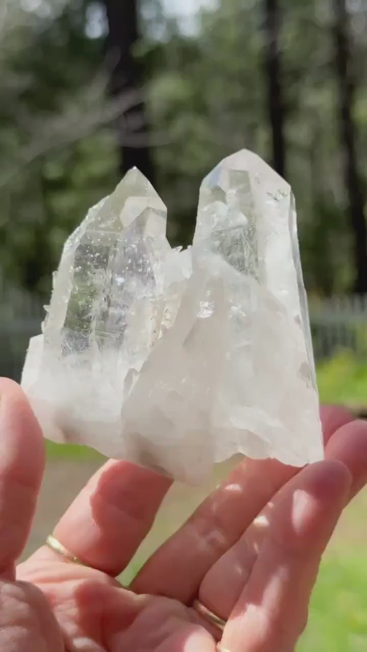 This listing is for the natural unpolished clear Lemurian Quartz shown. Featuring a highly prismatic, optical quartz from Colombia. This crystal is so unique and beautiful! Nice defined striations (lemurian bar codes) surround the points. Many tiny penetrator crystals are throughout and connecting the two main crystals. This quartz can be displayed on the side of one of the points and its very aesthetically pleasing! A simply magical piece, such high vibrations in this quality quartz.