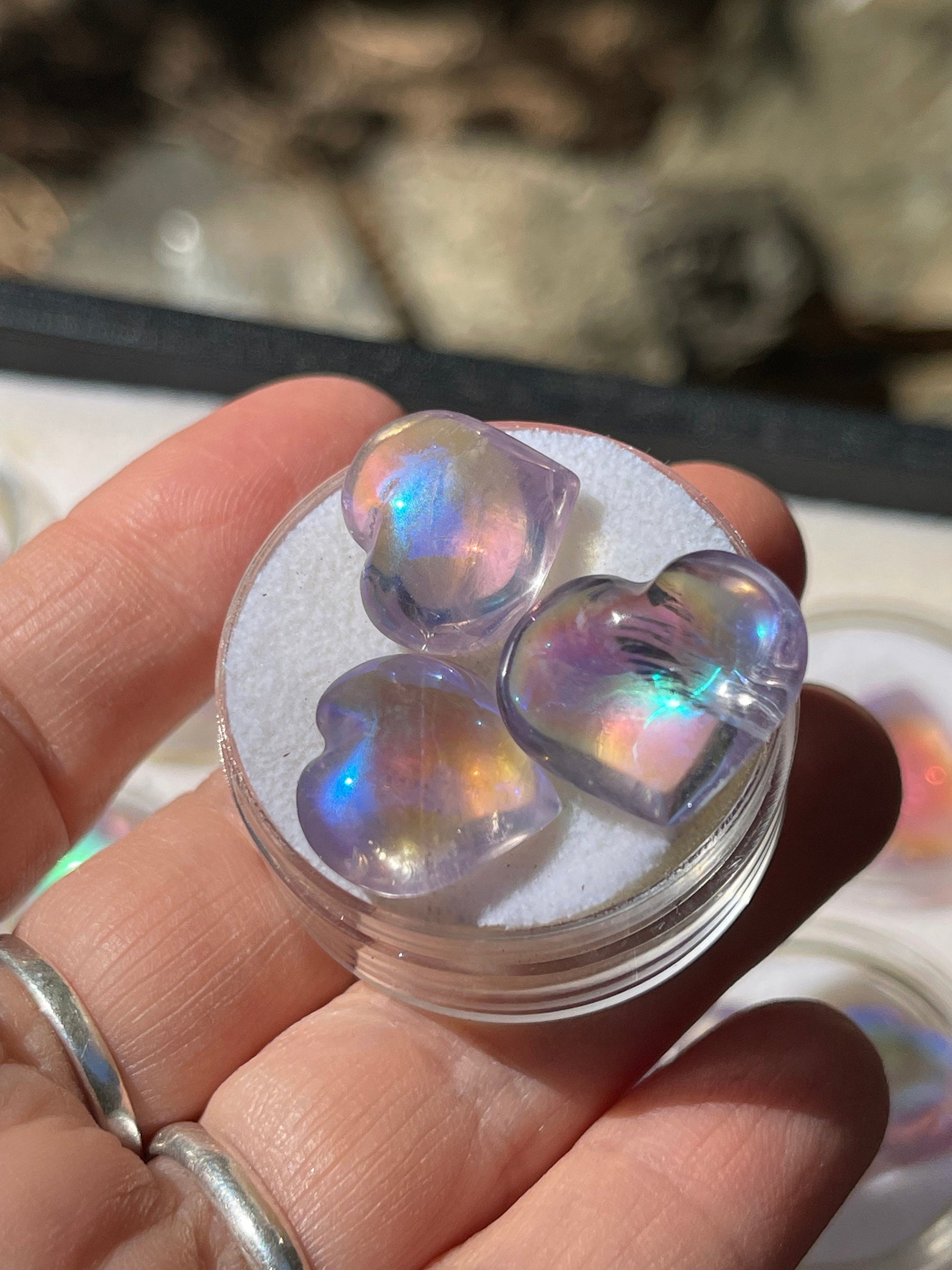 This listing is for top quality Angel Aura Amethyst Heart Gemstone. These gorgeous Amethyst are just beautiful..very gemmy, with amazing clarity..color ranges from nice rich lavender to purple to pink amethyst, also known as Rose de France. Price is per piece!