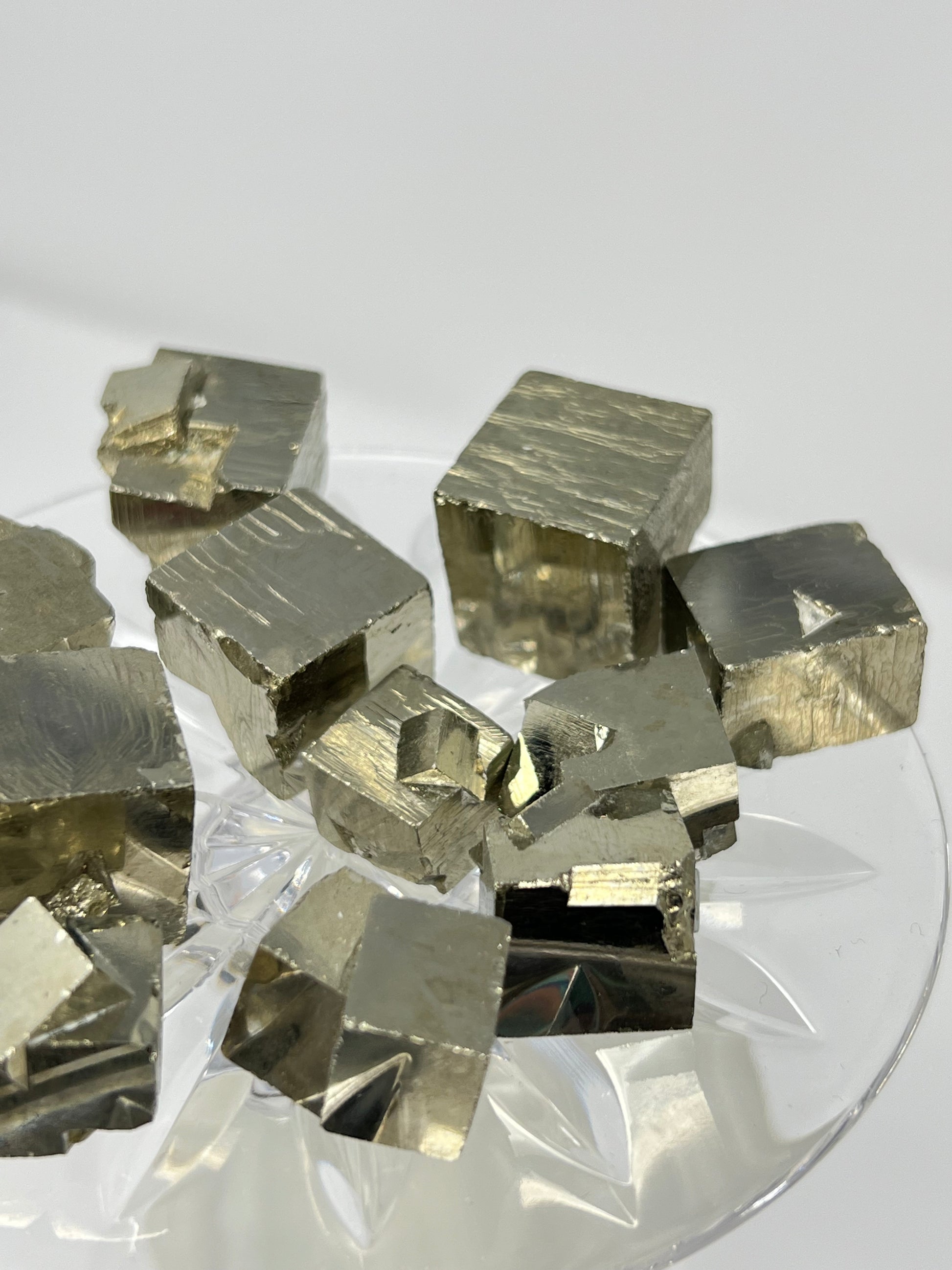 This listing is for your choice of cubic pyrite from the lot shown! Lustrous, high grade (unpolished, untreated) cubic pyrite in natural formation. These have such great aesthetic! You can buy a few single cubes and stack them or choose the cluster which has at least two combined! A magical addition to any collection!
