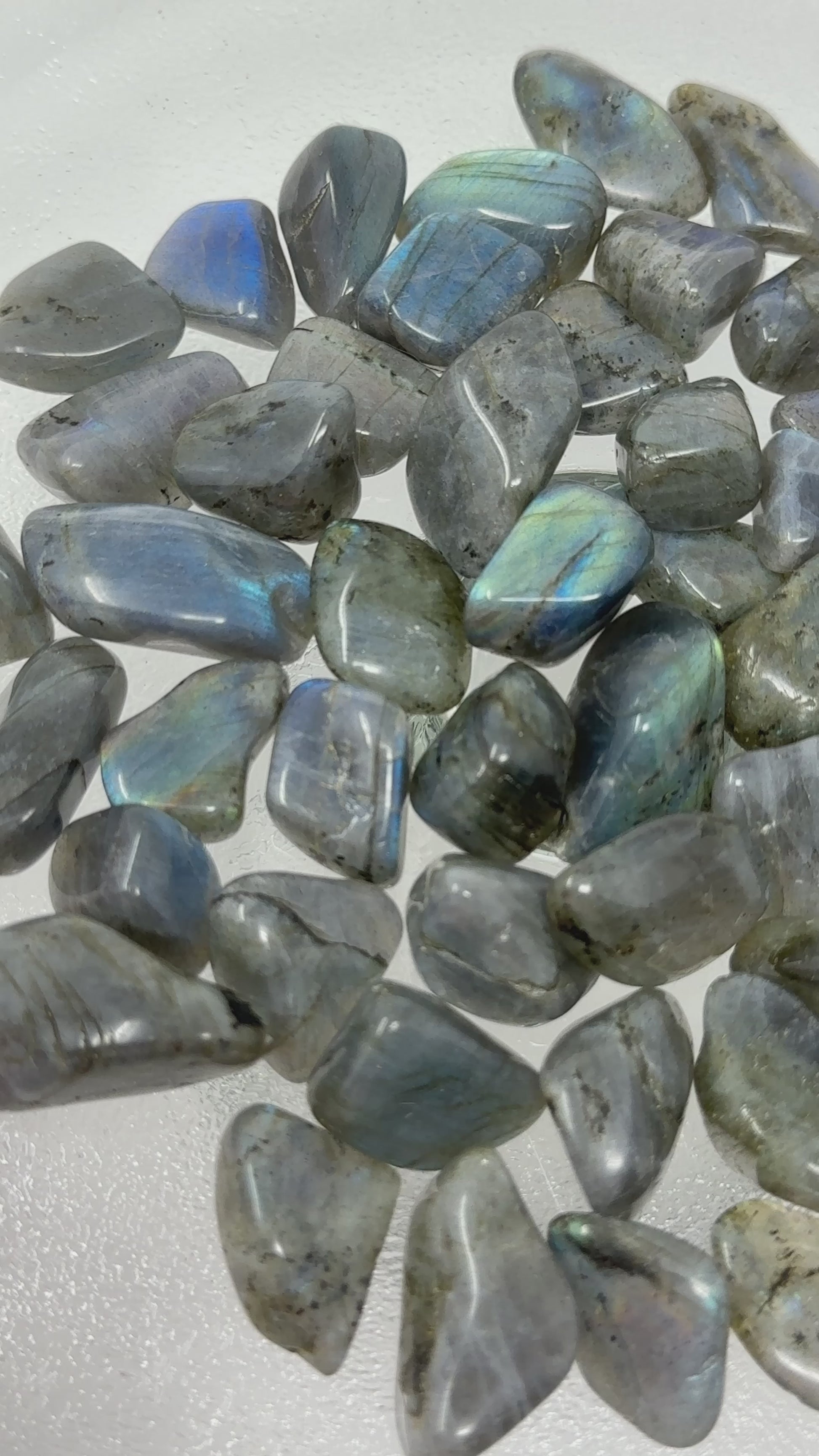 This listing is for one (1) flashy labradorite tumbled stone from the lot shown. Featuring top quality labradorite with vibrant color play and flashy chatoyancy. The colors display beautifully. A magical addition to any collection!