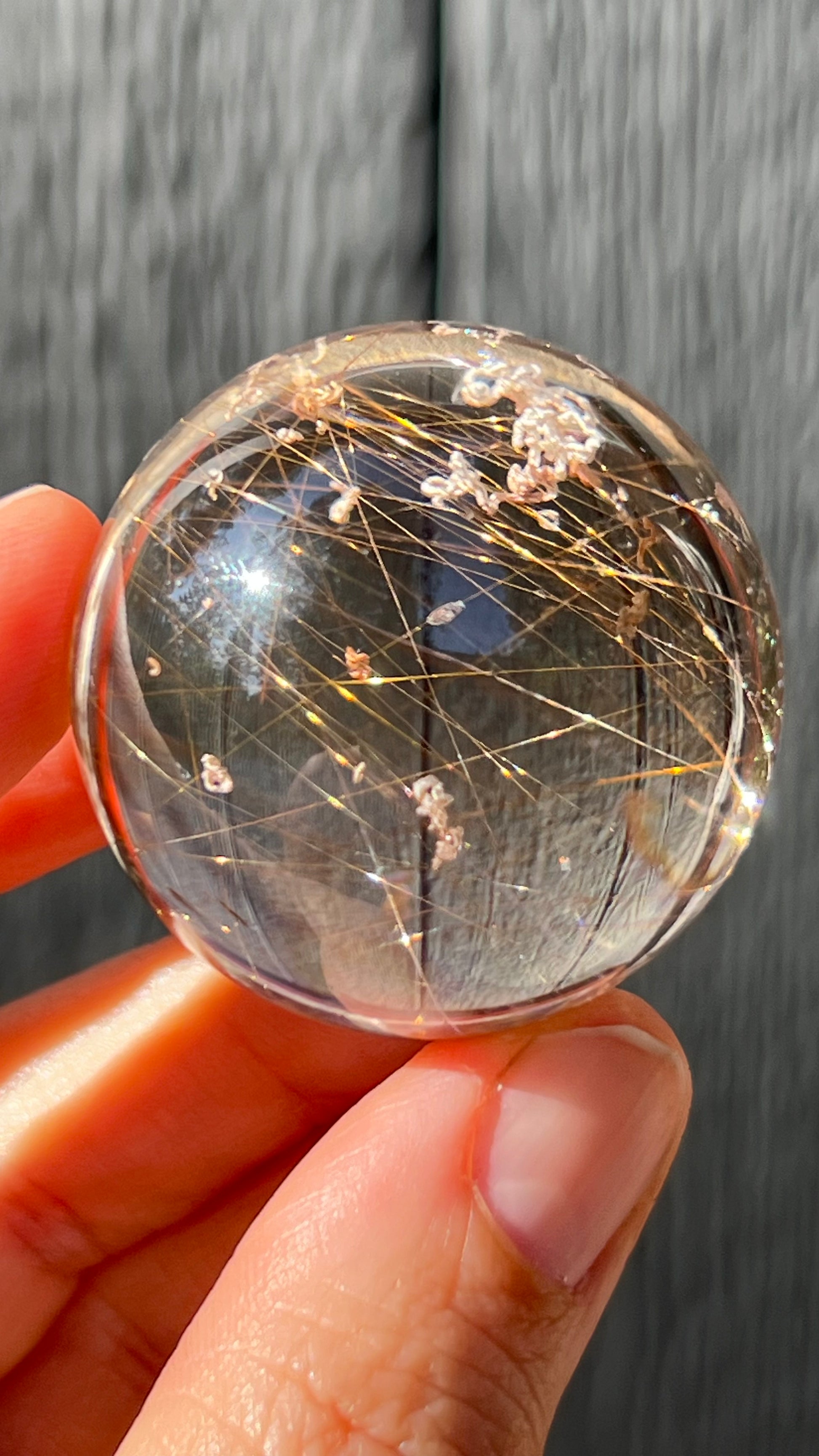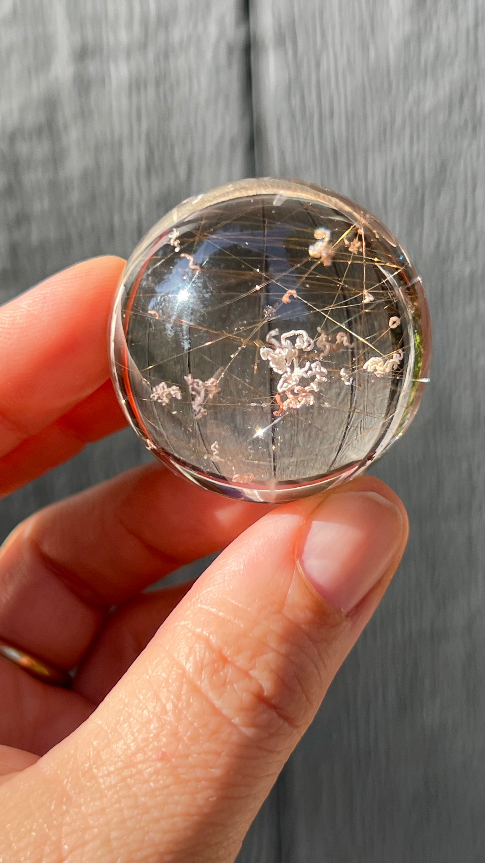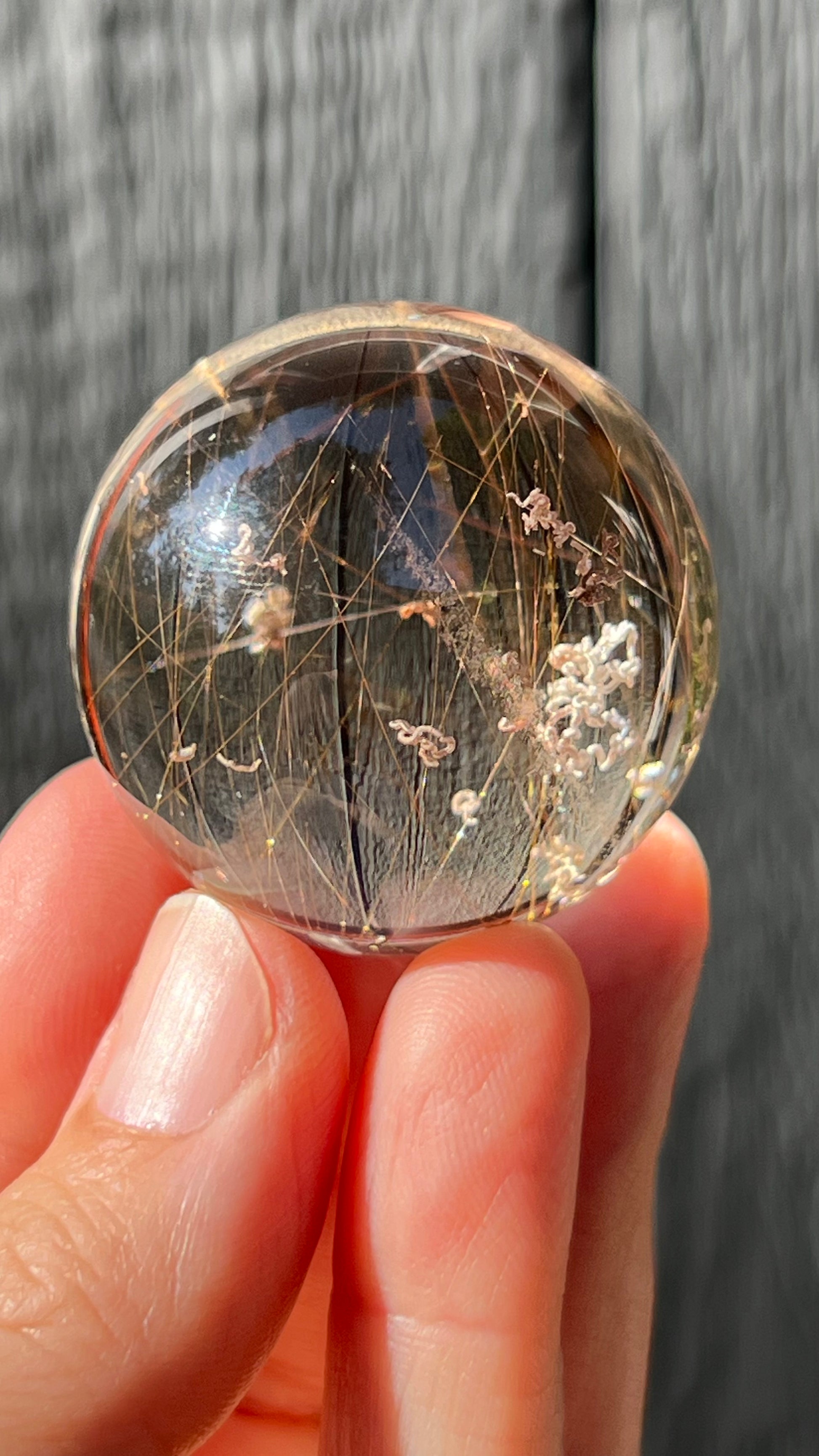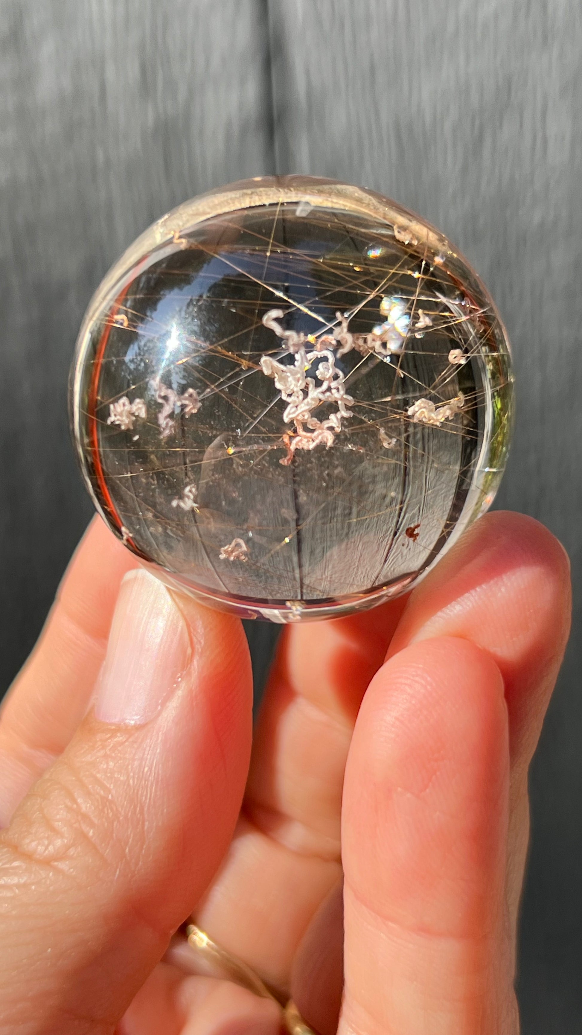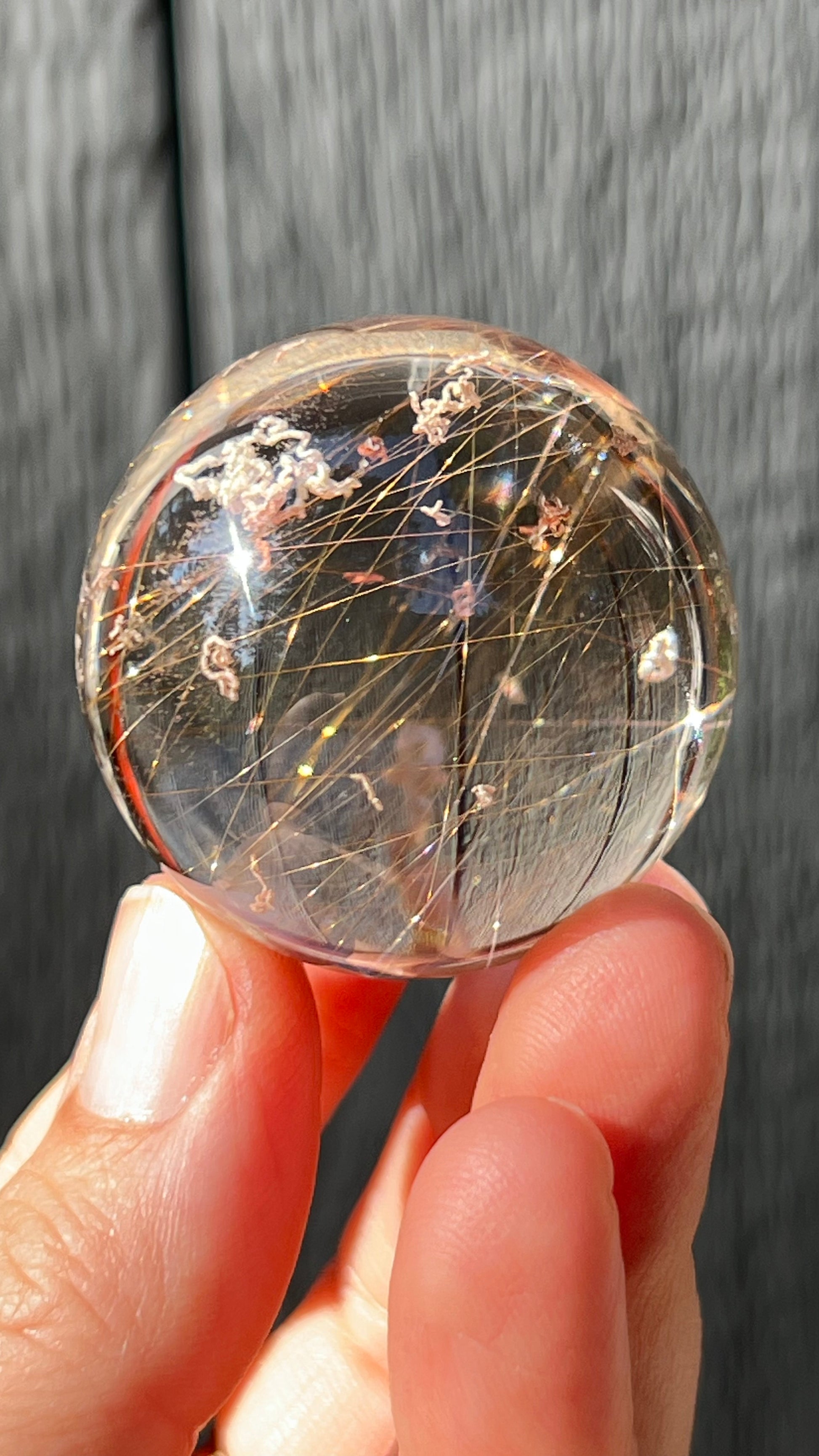 Gold Rutile Quartz Sphere with Unique Inclusions