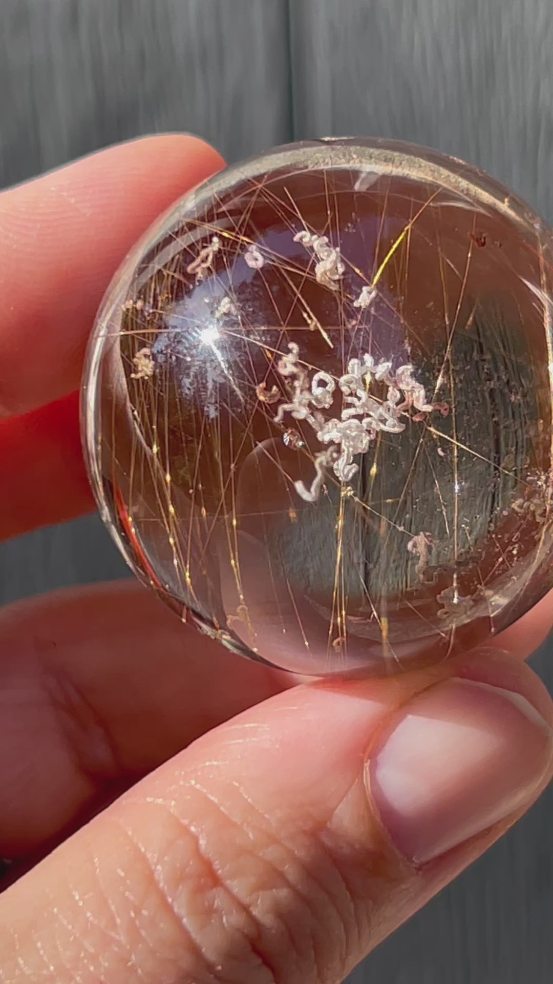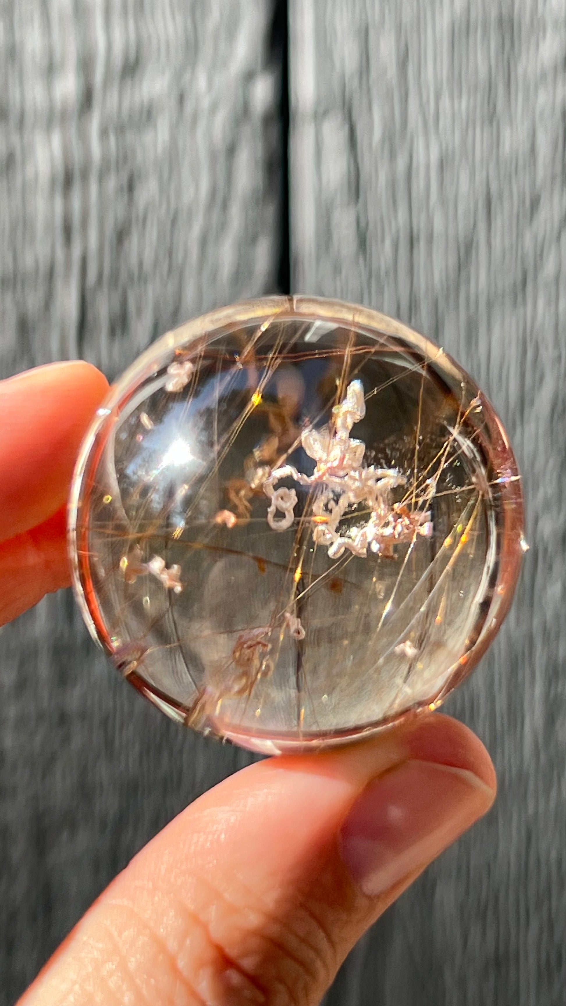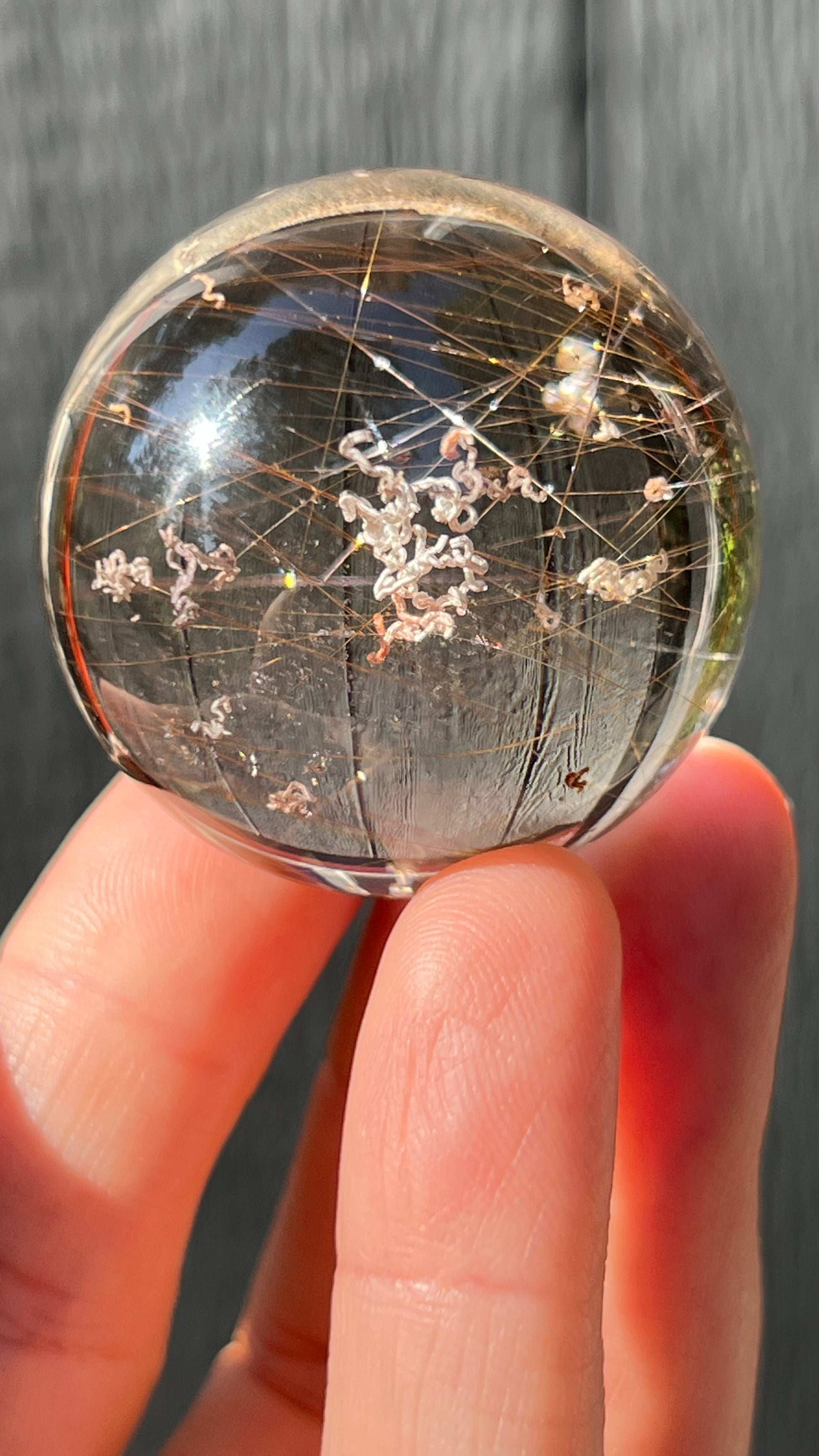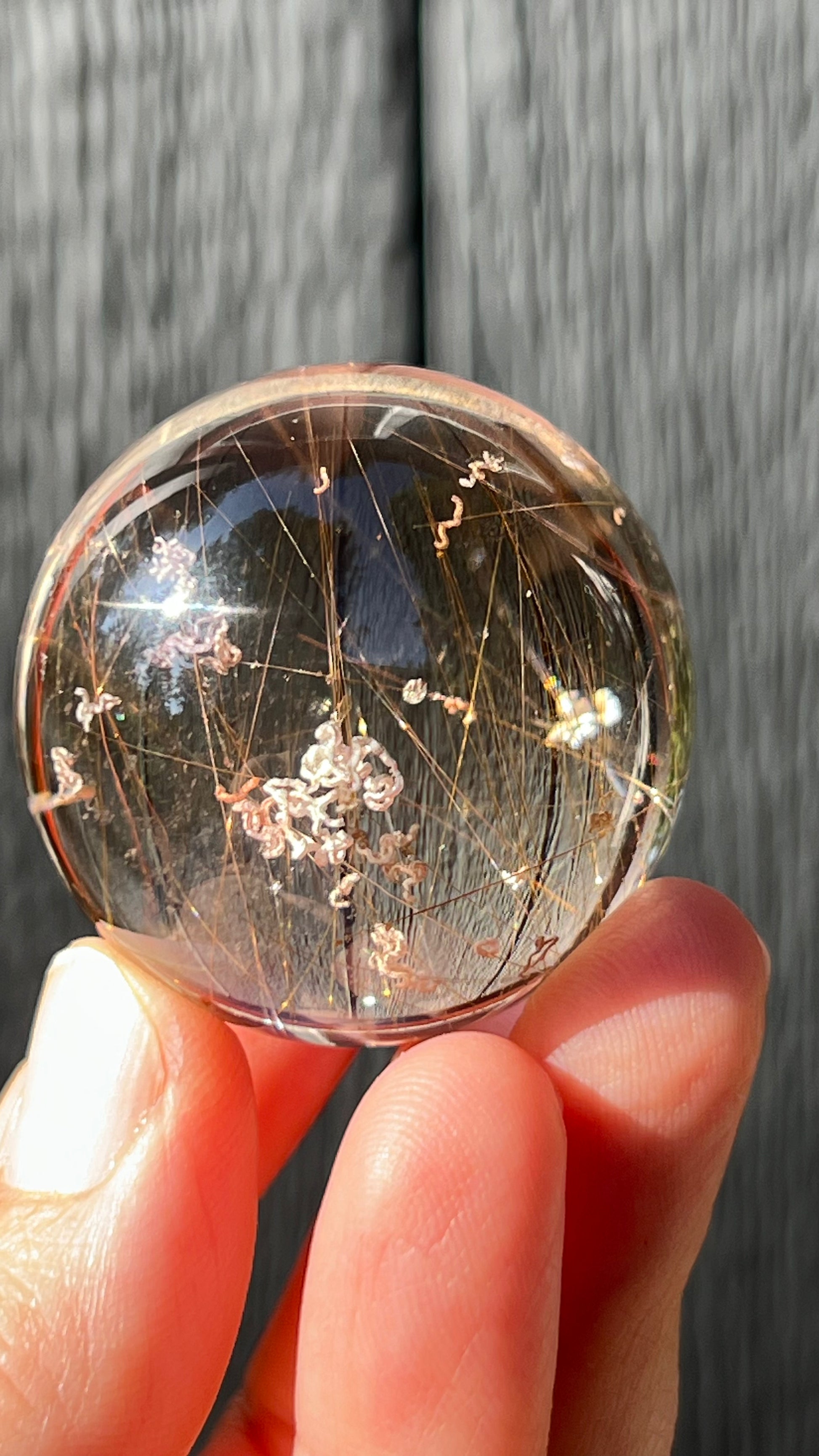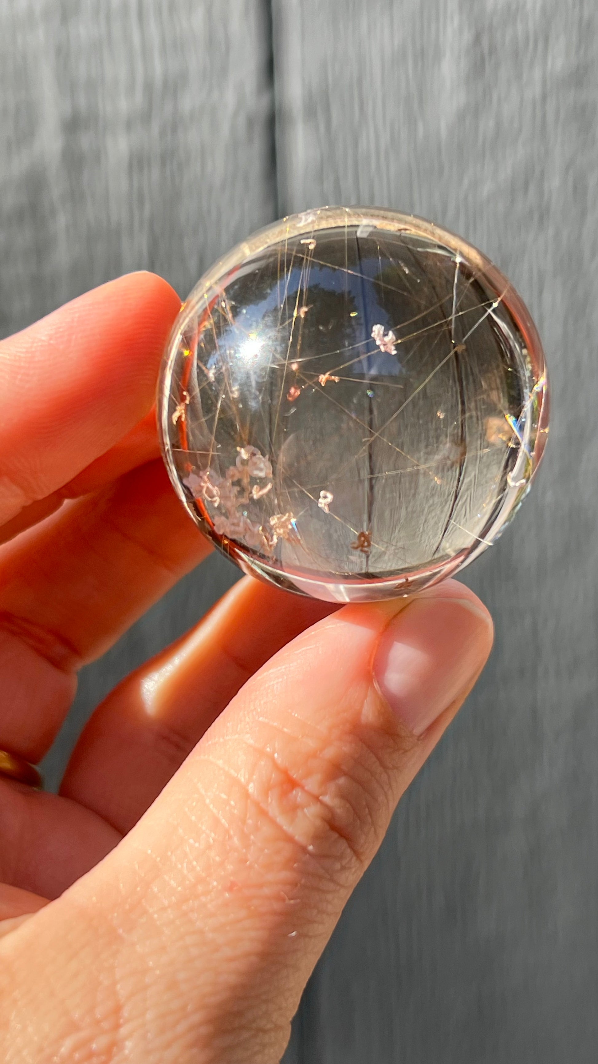 Gold Rutile Quartz Sphere with Unique Inclusions