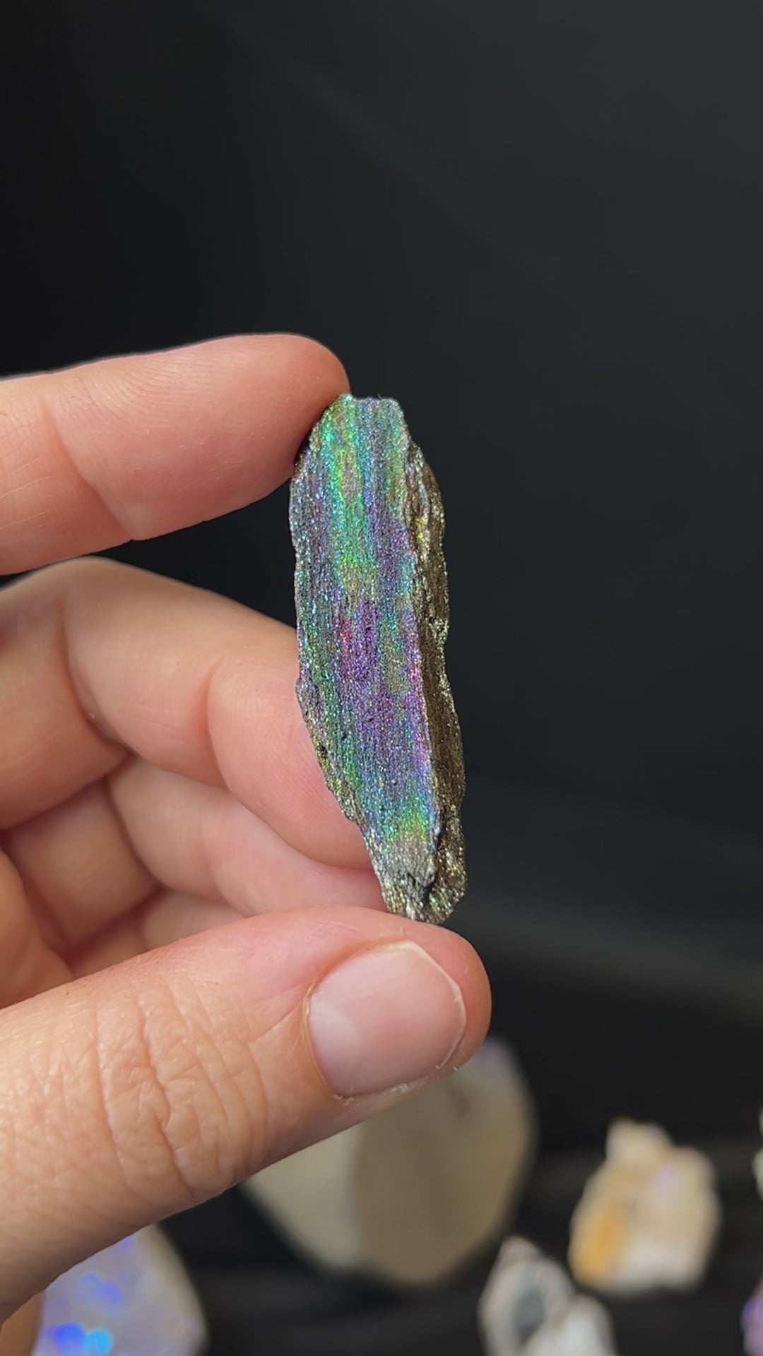 This listing is the rare Rainbow Hematite shown. Featuring natural iridescent nanoparticles over hematite. Both sides of this gem is covered with beautiful play of color. Shimmering natural rainbow. Collector's mineral and a fine addition to any collection.