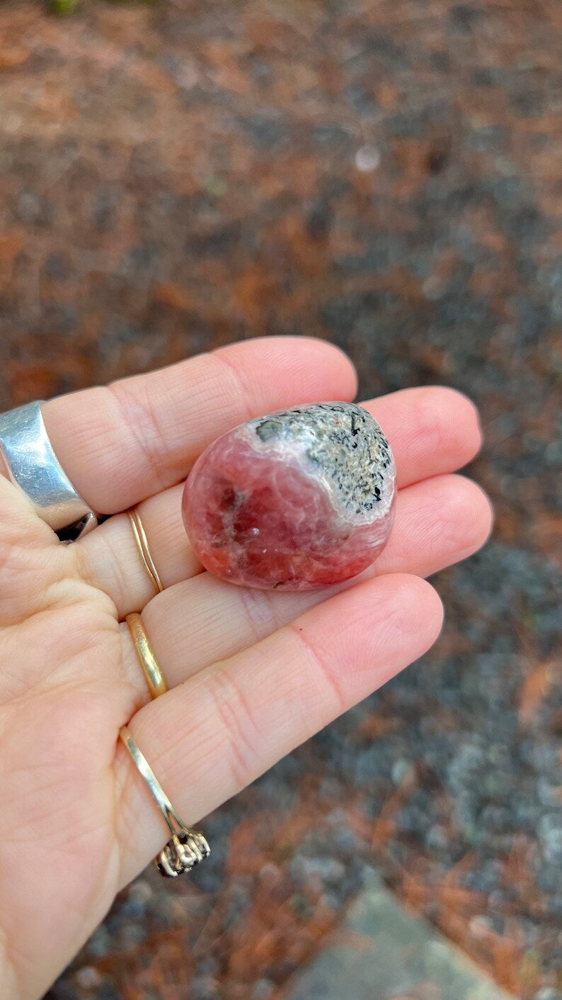 This listing is for the single Rhodochrosite stone shown. Featuring vibrant, energetically clear, Rhodochrosite in the best color! This crystal is very gemmy and a perfect pocket stone!
