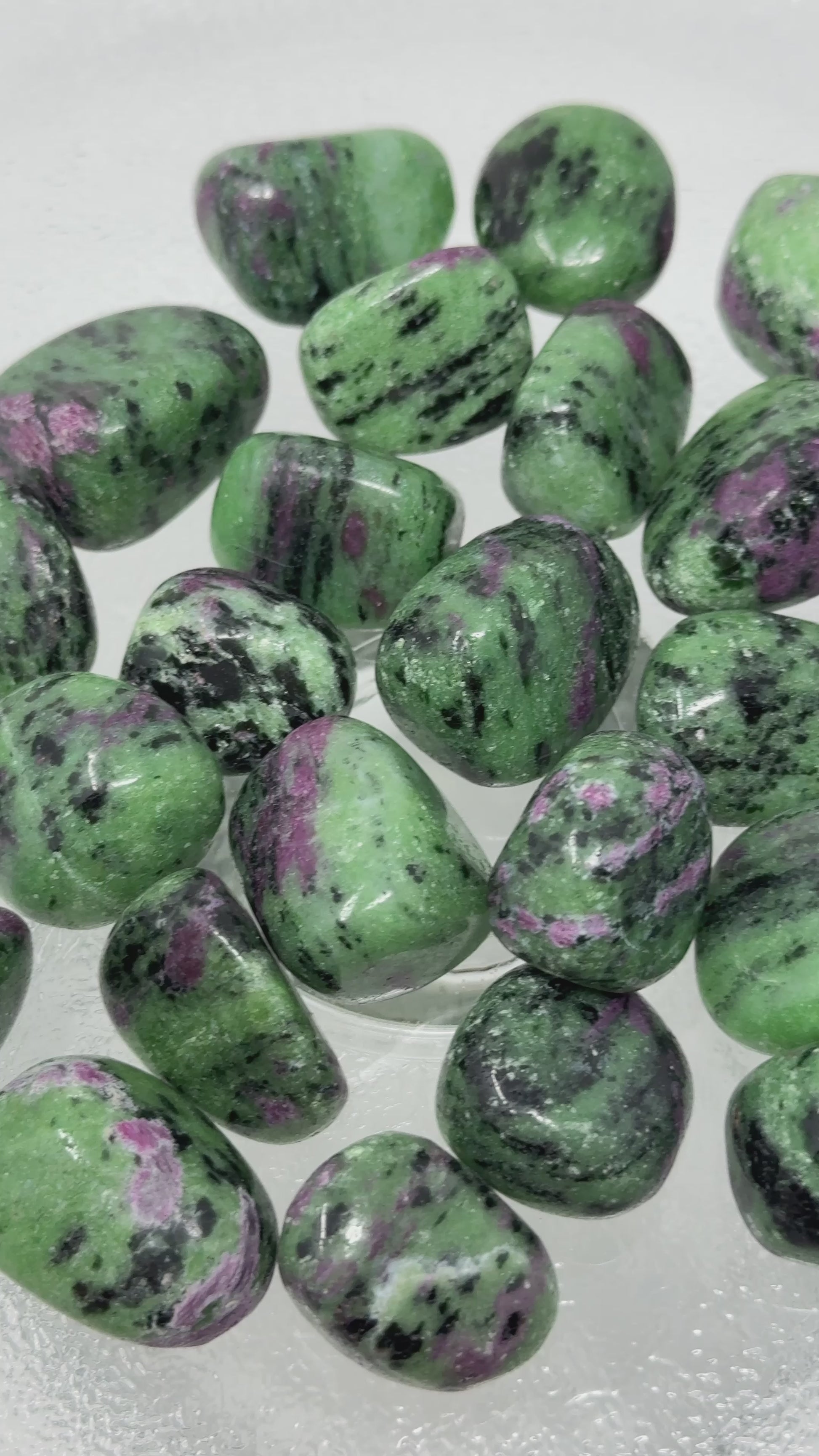 This listing is for one (1) Ruby in Zoisite tumbled stone from the lot shown. Featuring a polished, high-grade little gem! Great color and pattern on these littles stones. A magical addition to any collection!