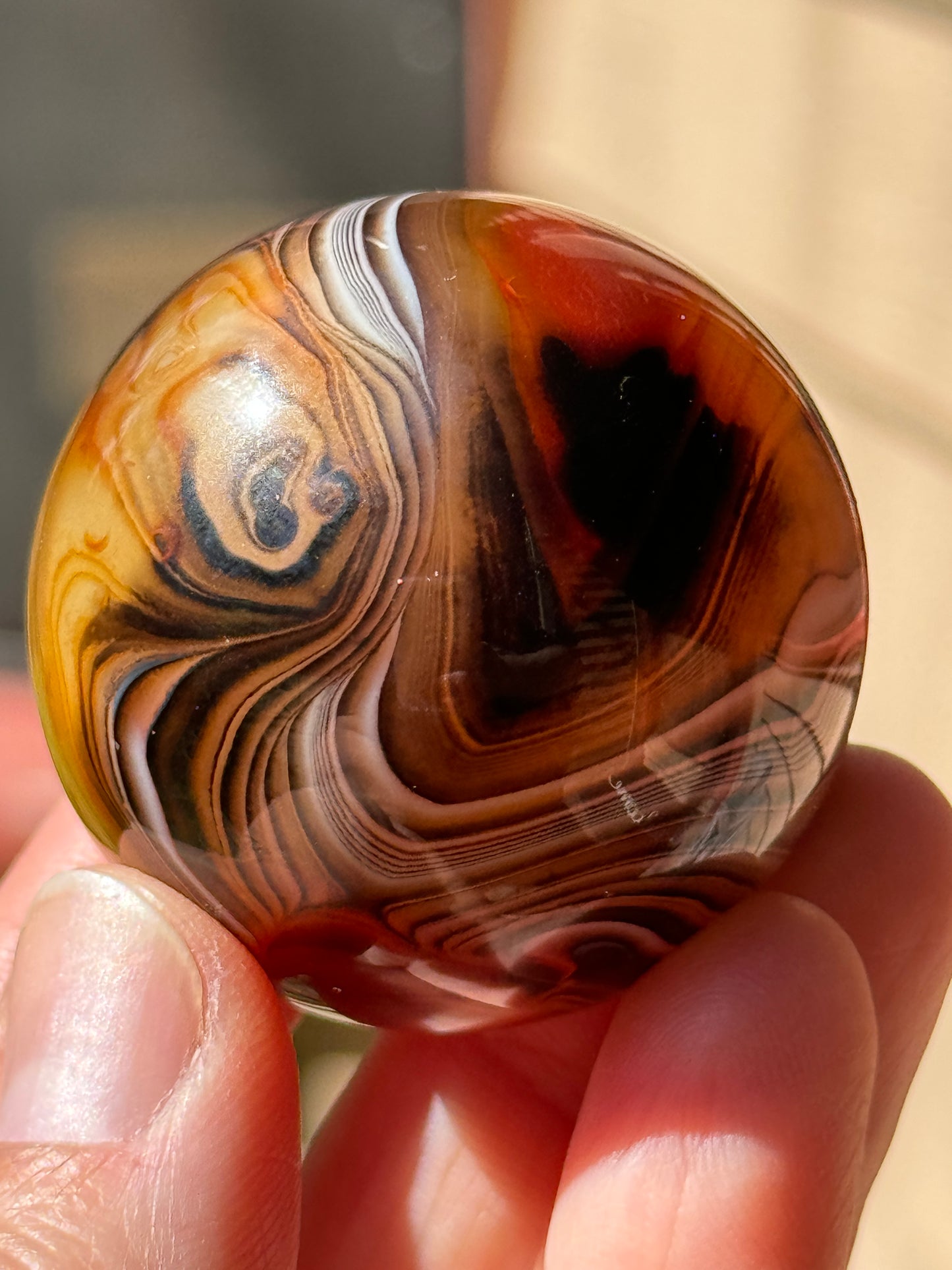 This listing is for the Sardonyx sphere shown. Featuring a unique and beautiful sphere that has many orbs, swirls and mysterious patterns throughout. They are all very defined with nice contrast of colors! You will receive the exact sphere shown. Includes a display stand.