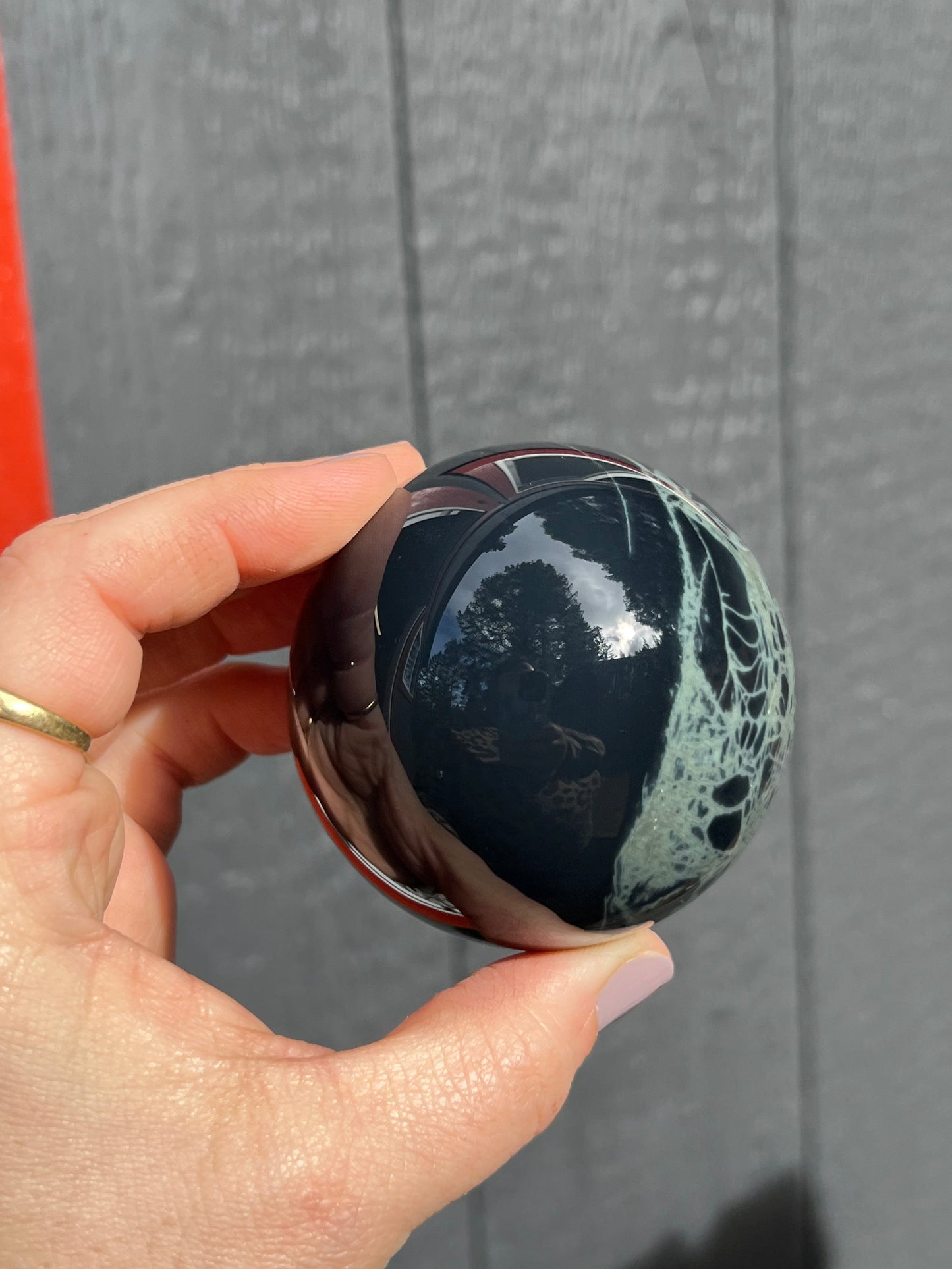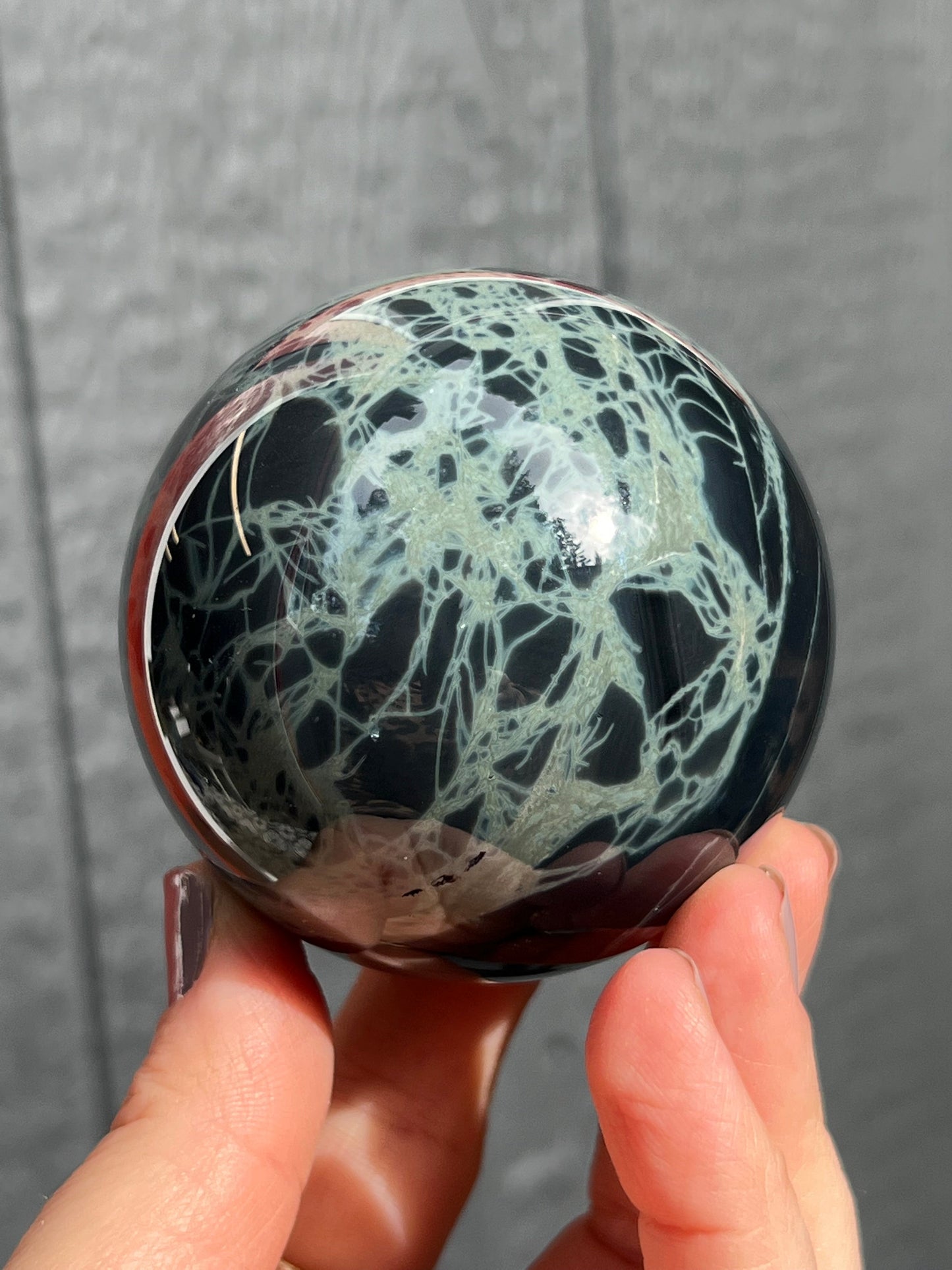 This listing is for the spider web obsidian sphere shown. Featuring a top quality obsidian with great patterns and contrast of color. Spider web obsidian is perfect for working on breaking through any challenges in your life. It assists you in making decisions and maintaining confidence and clear intuitive visions. Includes a sphere stand. A must have in any collection!