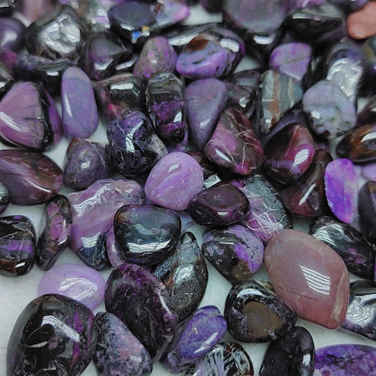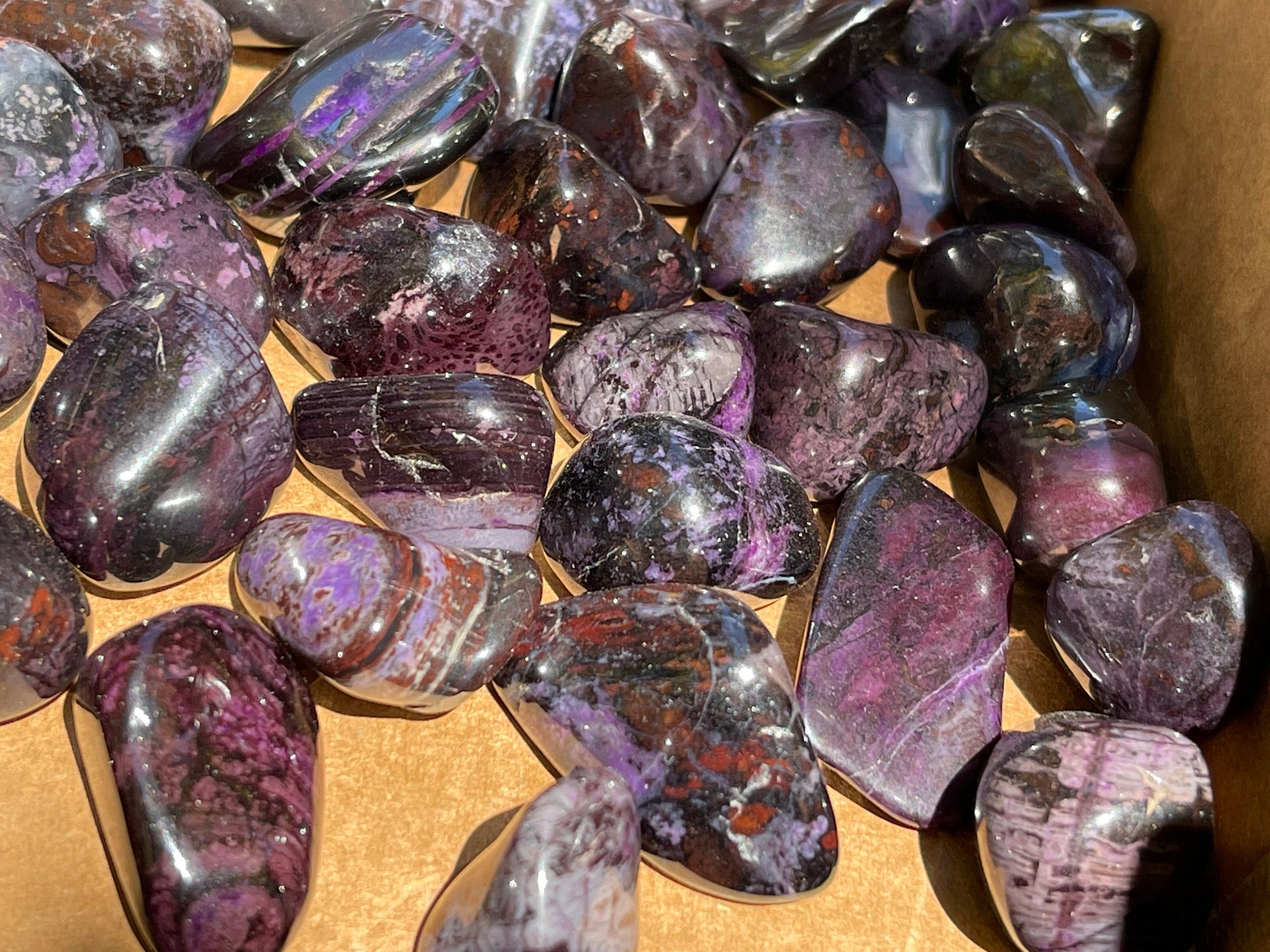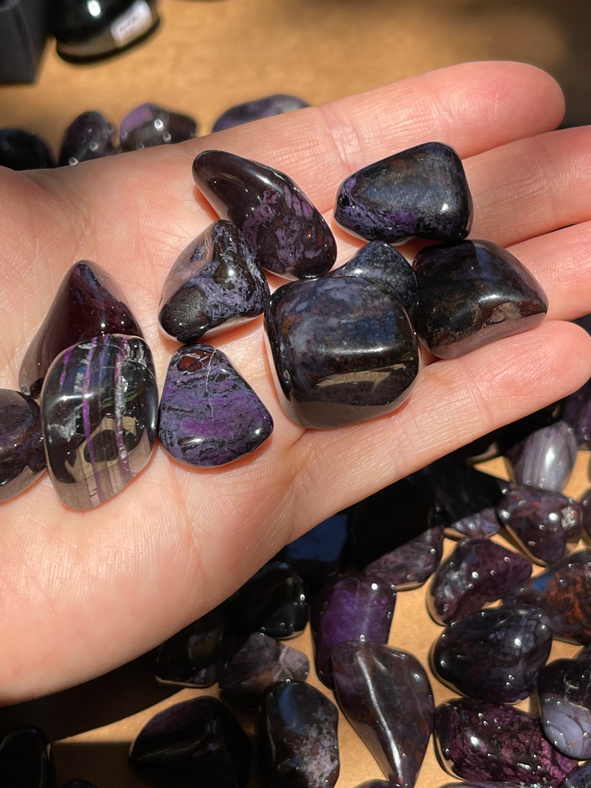 This collection is old stock and has been in a personal collection for some time. These are so hard to find as the material is no longer being mined. This is the last of this highly sought after Sugilite that we might ever be able to offer!