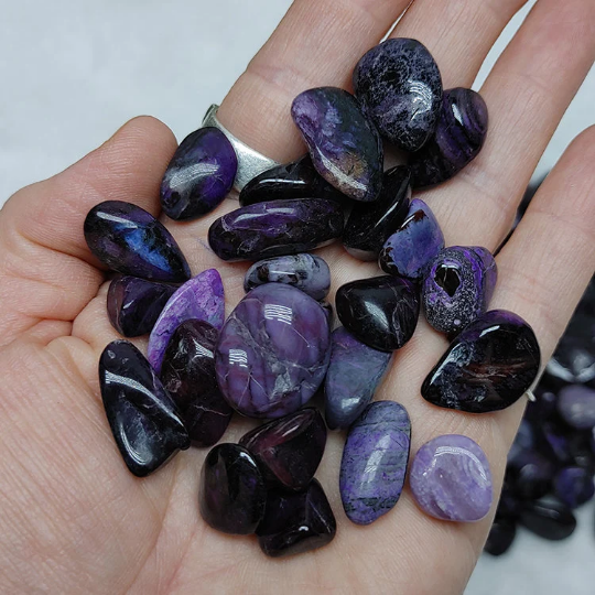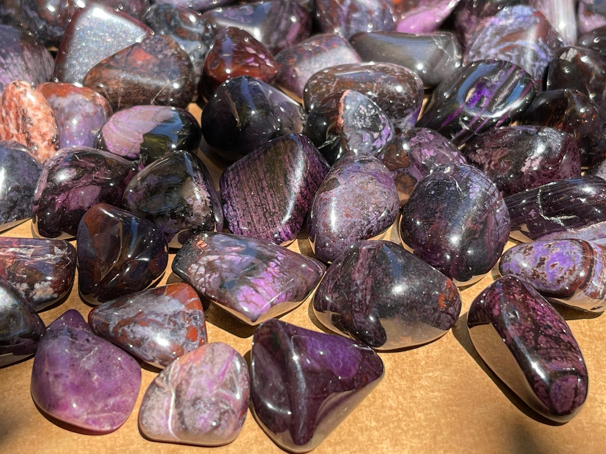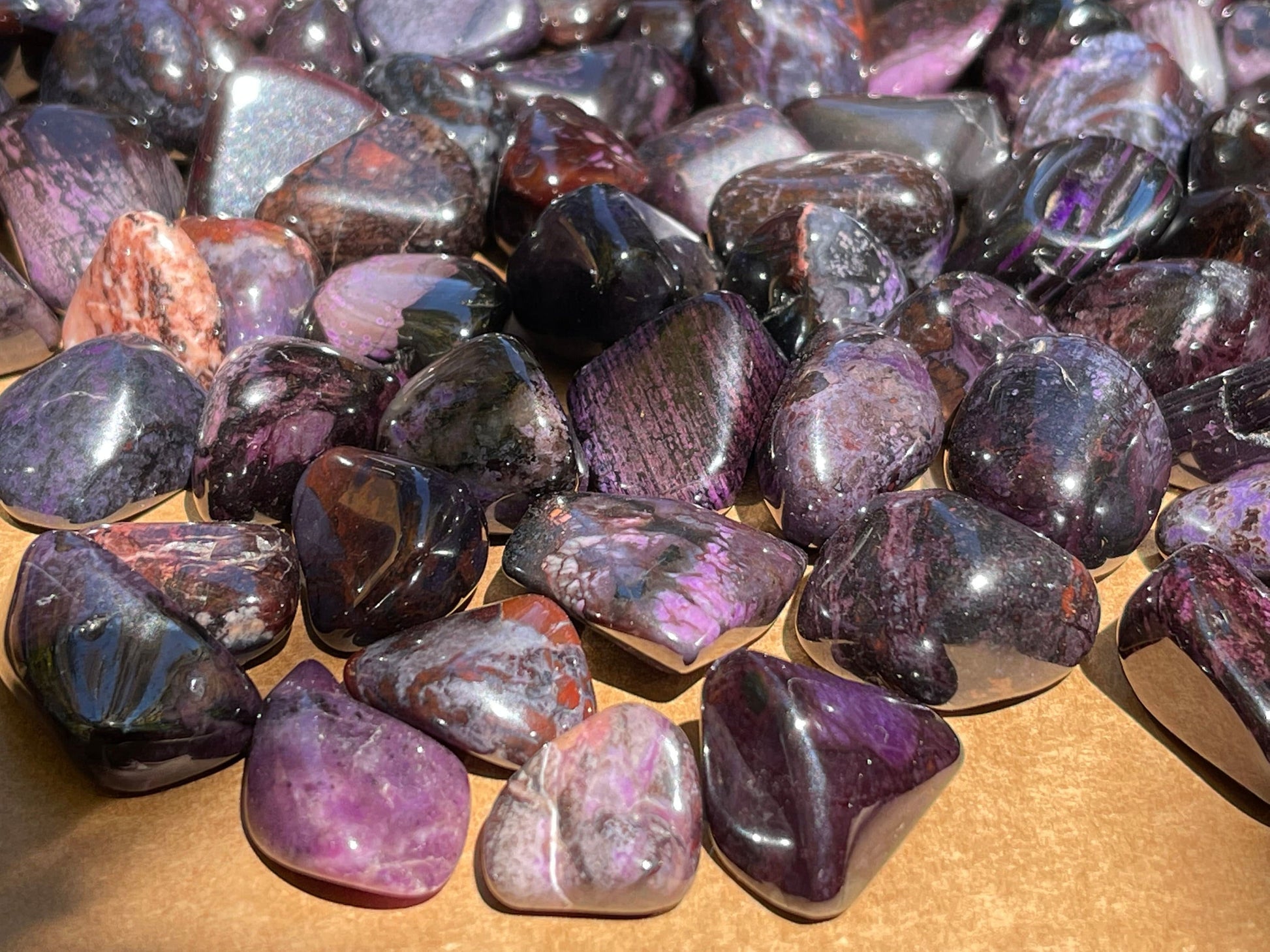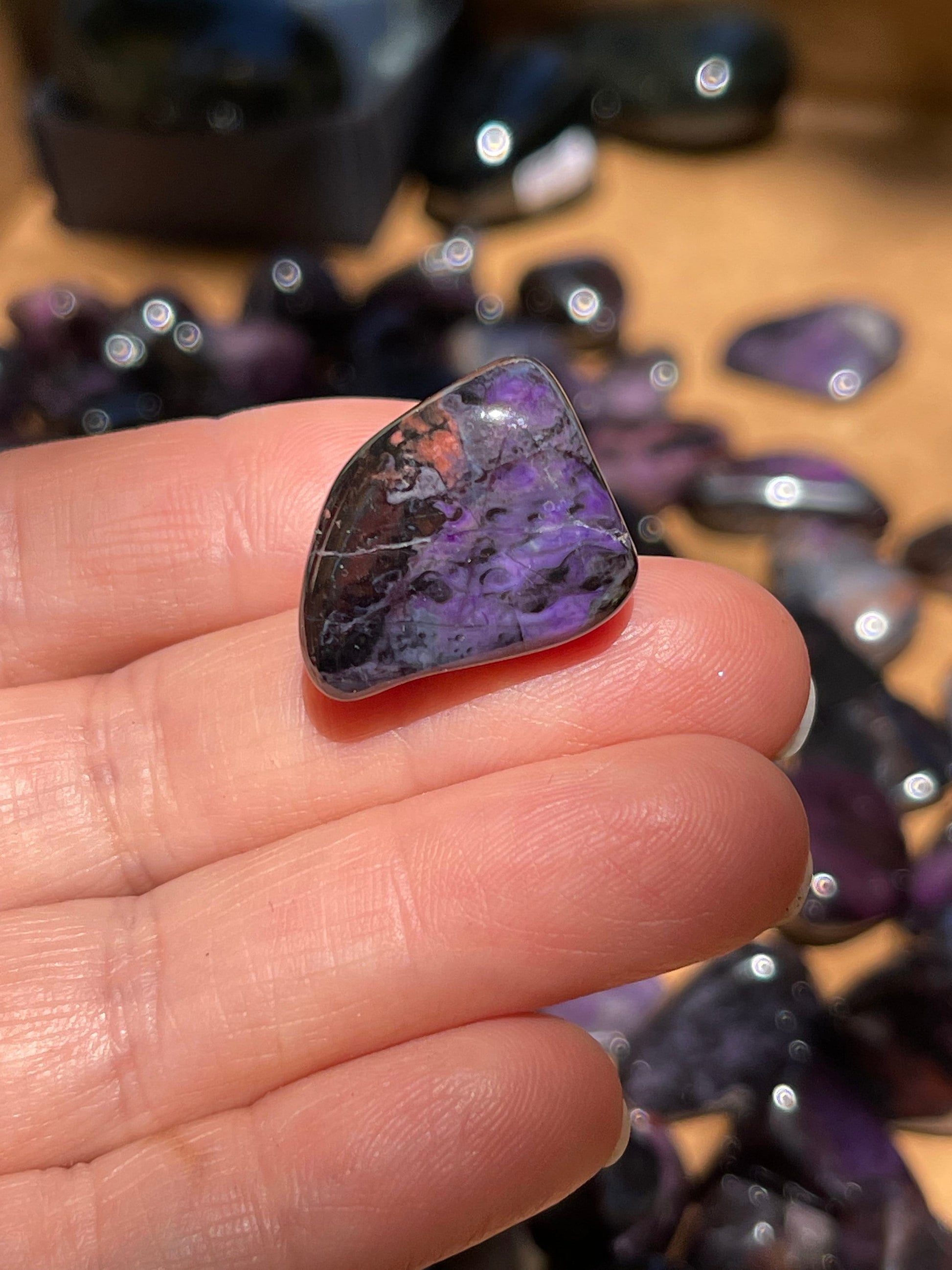 This listing is for top quality Sugilite, also known as Luvulite. The energy and color of these pieces are beautiful - shades ranging from pink to dark purple sugilite. Some have pink bustamite and vibrant blue richterite. A magical addition to any collection! You will receive your selection from the lot shown above. Price is for (1) A grade Sugilite.
